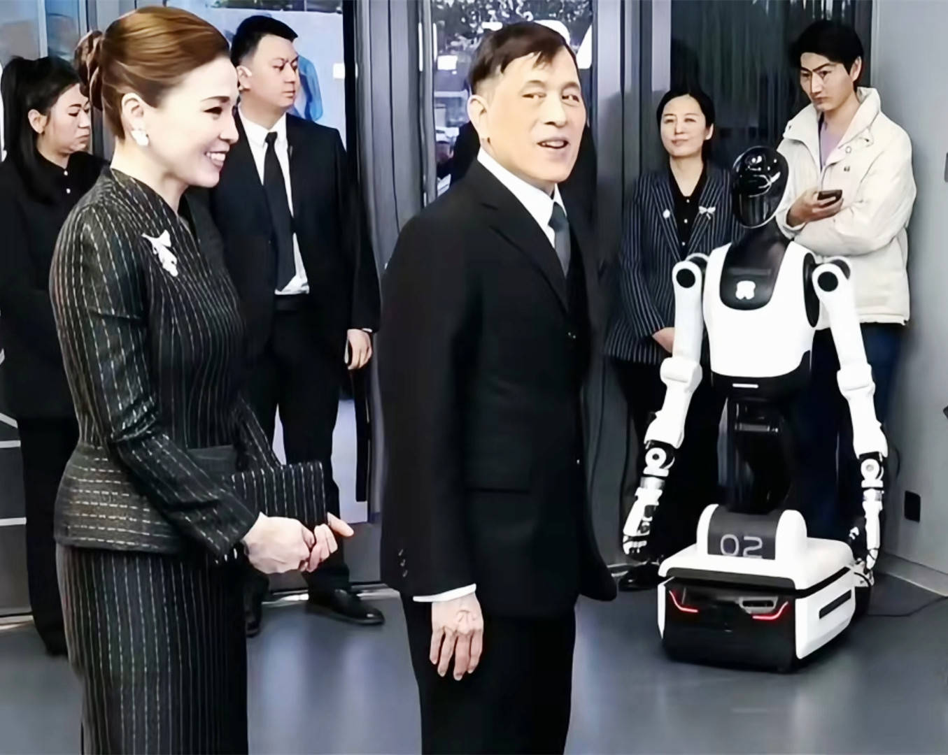 下午的行程则转向了未来科技,苏提达王后和泰王参观了北京人形机器人创新中心。在这一场合,王后身着黑色裙装套装,衣料上隐约带有精致的暗纹,低调却不失高贵。她在整个参访过程中专注倾听,仪态从容,始终展现出极高的专注度和优雅气质。媒体拍摄的照片几乎没有失态,网友纷纷赞叹:“她真的是360度无死角,充满健康大气的感觉。”此外,王后每套服饰上的胸针或别针都展现出她的品味与细节之美。