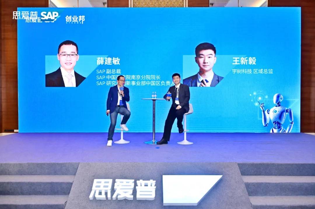宇树科技区域总监王新毅与SAP副总裁、SAP中国研究院南京分院院长、SAP 研究与创新事业部中国区负责人薛建敏进行对话