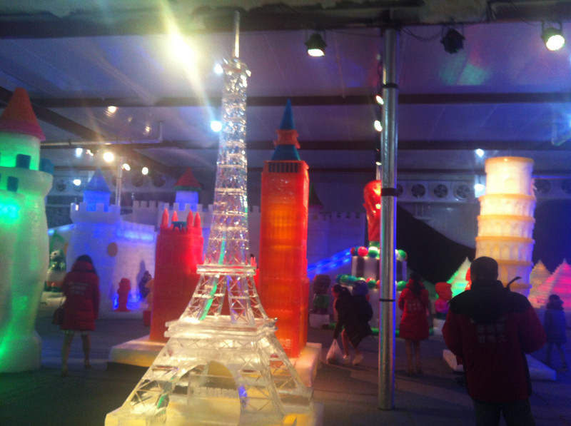 项目布置在荷兰风车(北园区域)与开原寺(浒山东麓)之间的空地。虽规模有限(约1200平方米),但作为华东地区较具特色的室内冰雕展,包含五大主题区: