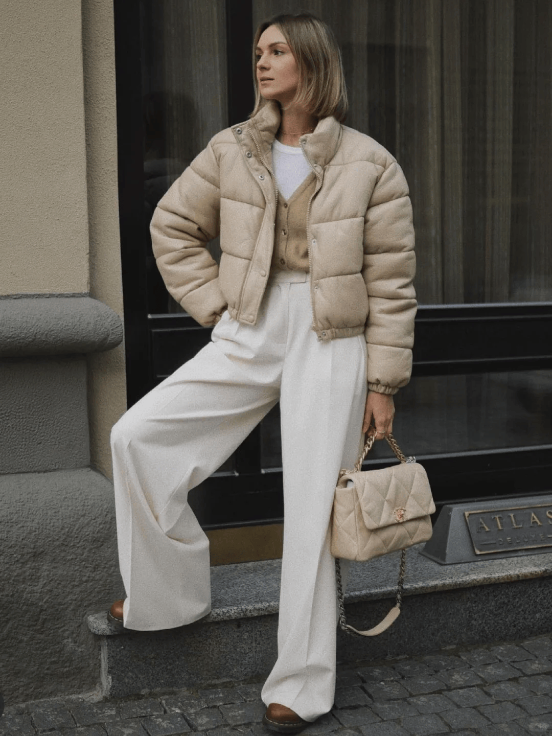 羽绒服的轻盈,阔腿裤的潇洒,