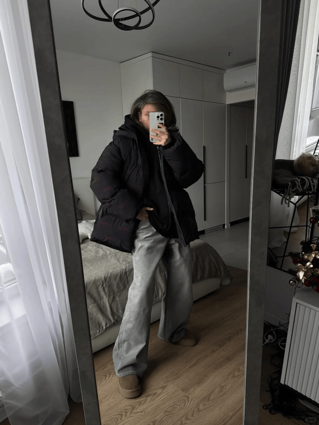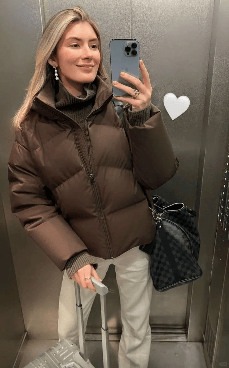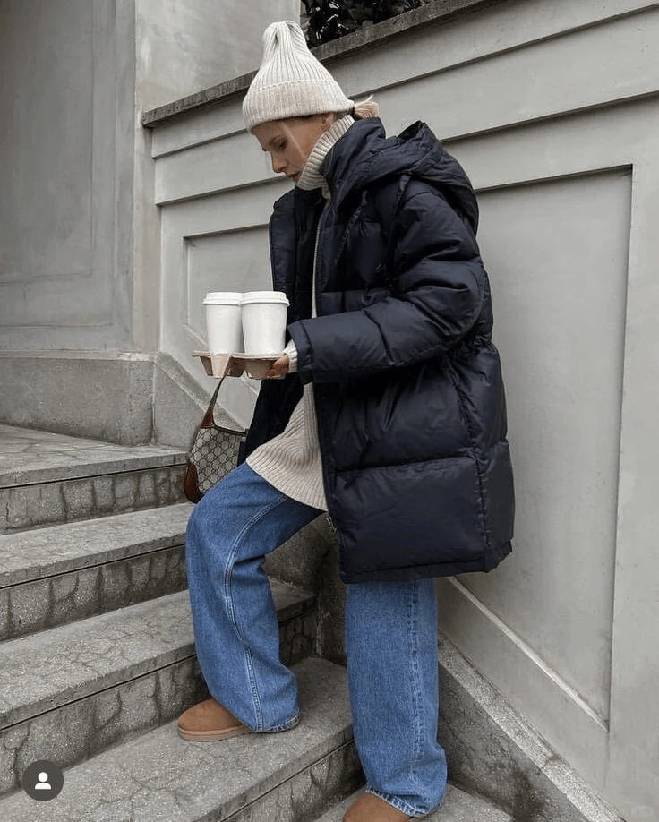 一件羽绒服,一条阔腿裤,简单又时髦。