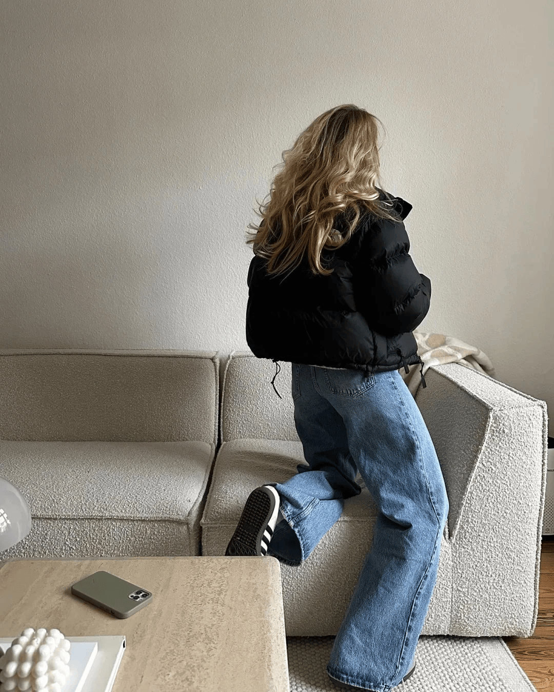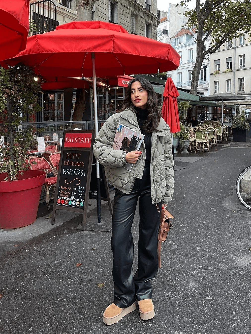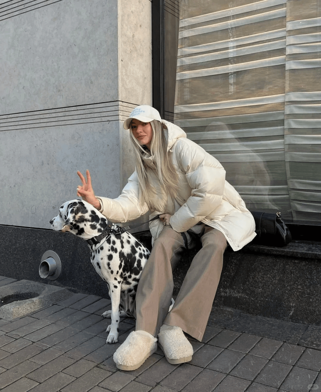 一件羽绒服,一条阔腿裤,简单又时髦。