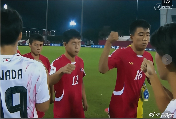 在U-17世界杯16强赛(朝鲜对阵日本)的赛前例行握手环节,朝鲜队员未采用常规击掌或握手,而是以紧握拳头、自上而下猛力捶打日本队员的手部。动作被多国媒体描述为“暴力性击掌”“重锤式拳击”,日本球员因此出现明显不适反应。朝鲜队员全程表情严肃,未展现友好姿态,被解读为带有强烈敌对情绪。