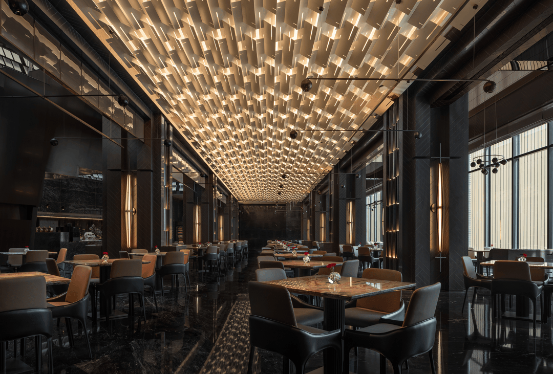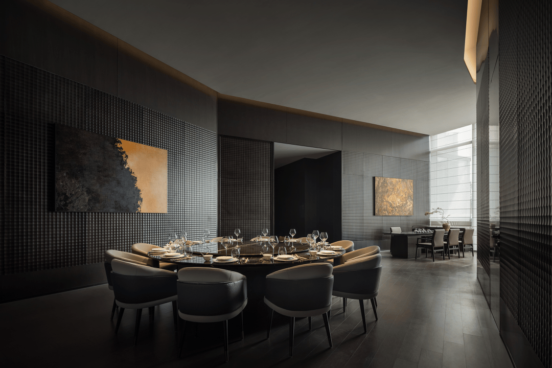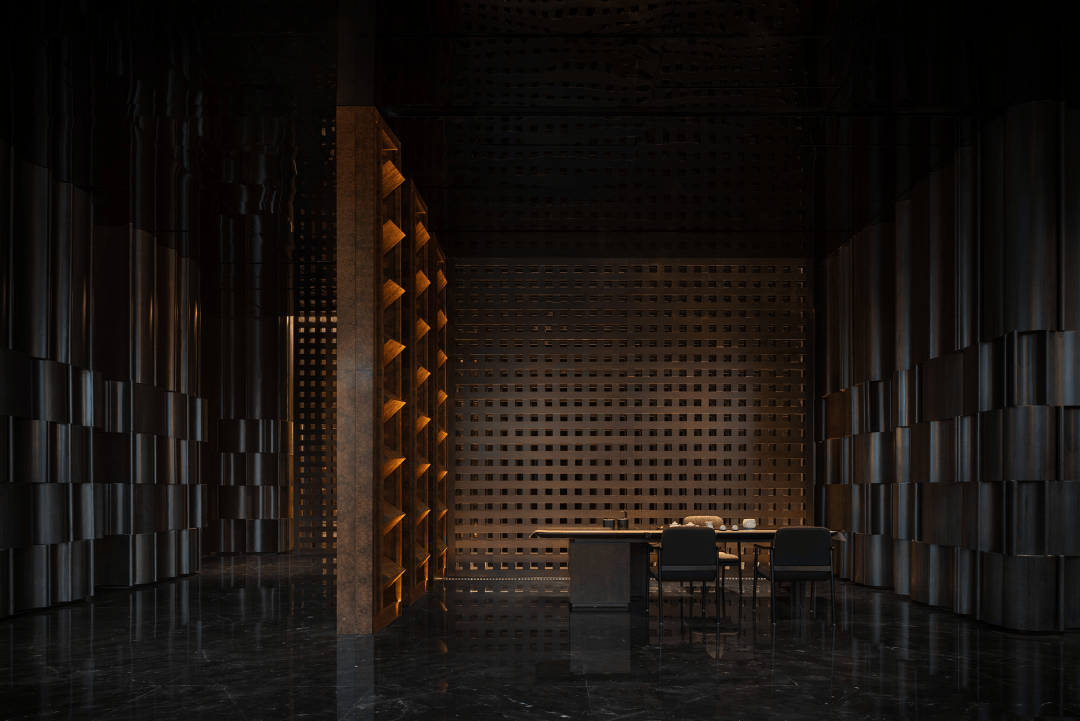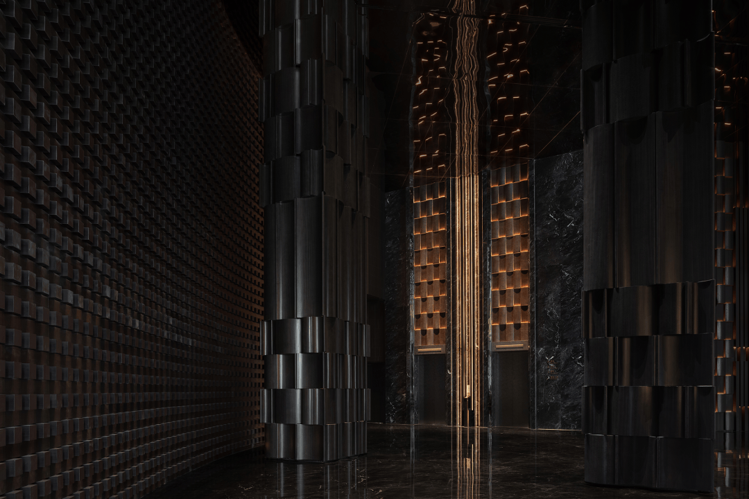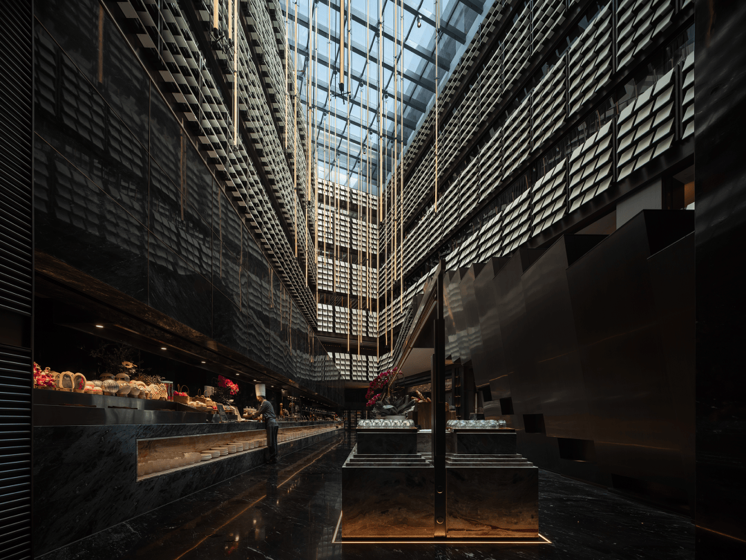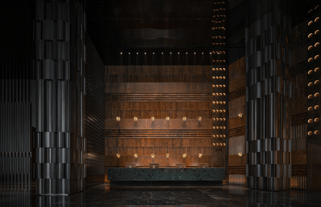 “远宏近秀”的设计概念随进入逐渐明晰。金属、石材、木饰、织物等等构建起一座巨型圣殿,其氛围并非来自昂贵的材料,而是源于材料被放置和感知的方式。空间的质量、光的层次、寂静的声响——这些成为塑造体验的根本。