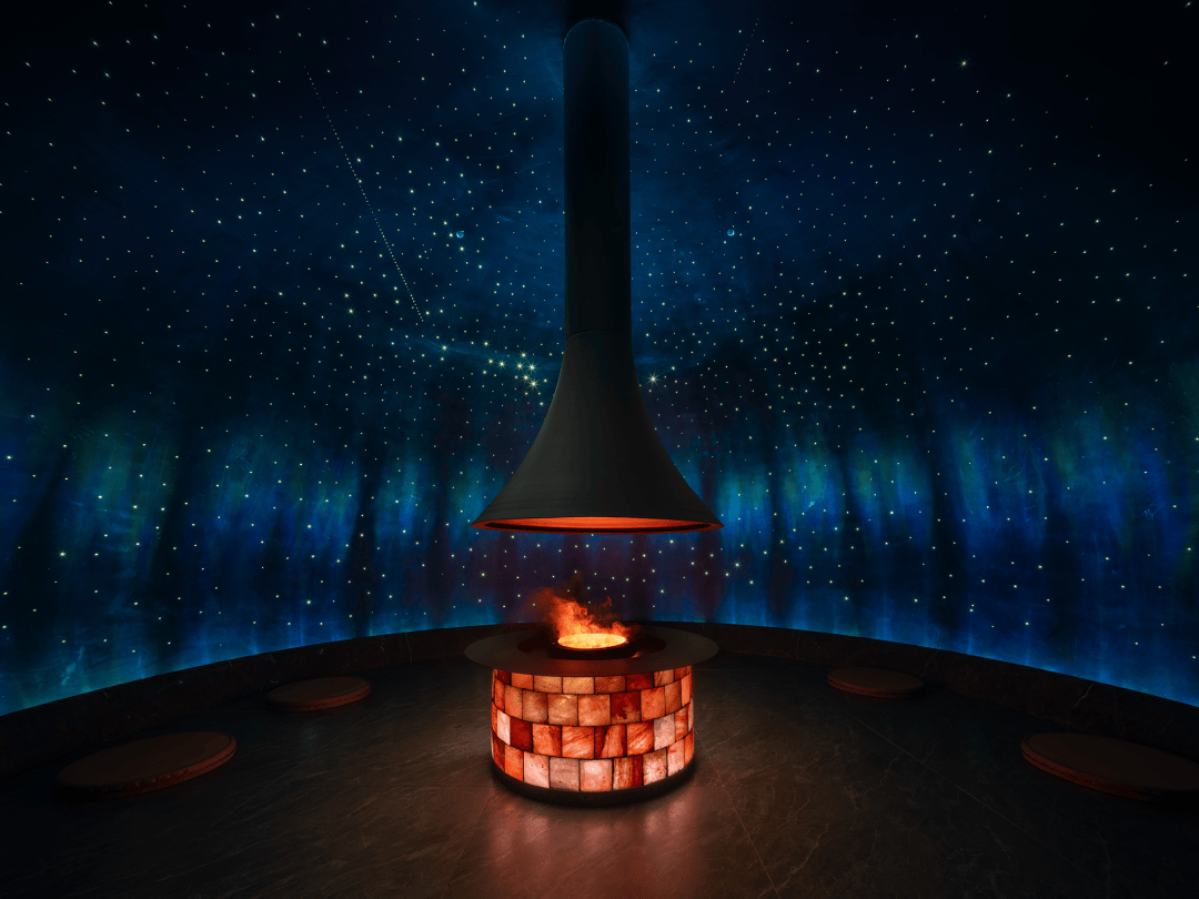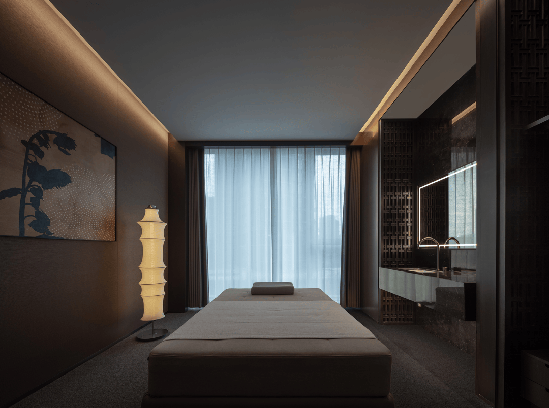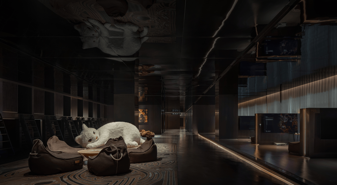 SPA大厅重归宁静的秩序,岩石、土壤、星球的隐秘刻痕无处不在,灯光垂首,无数个隐秘角落皆可探寻遨游。