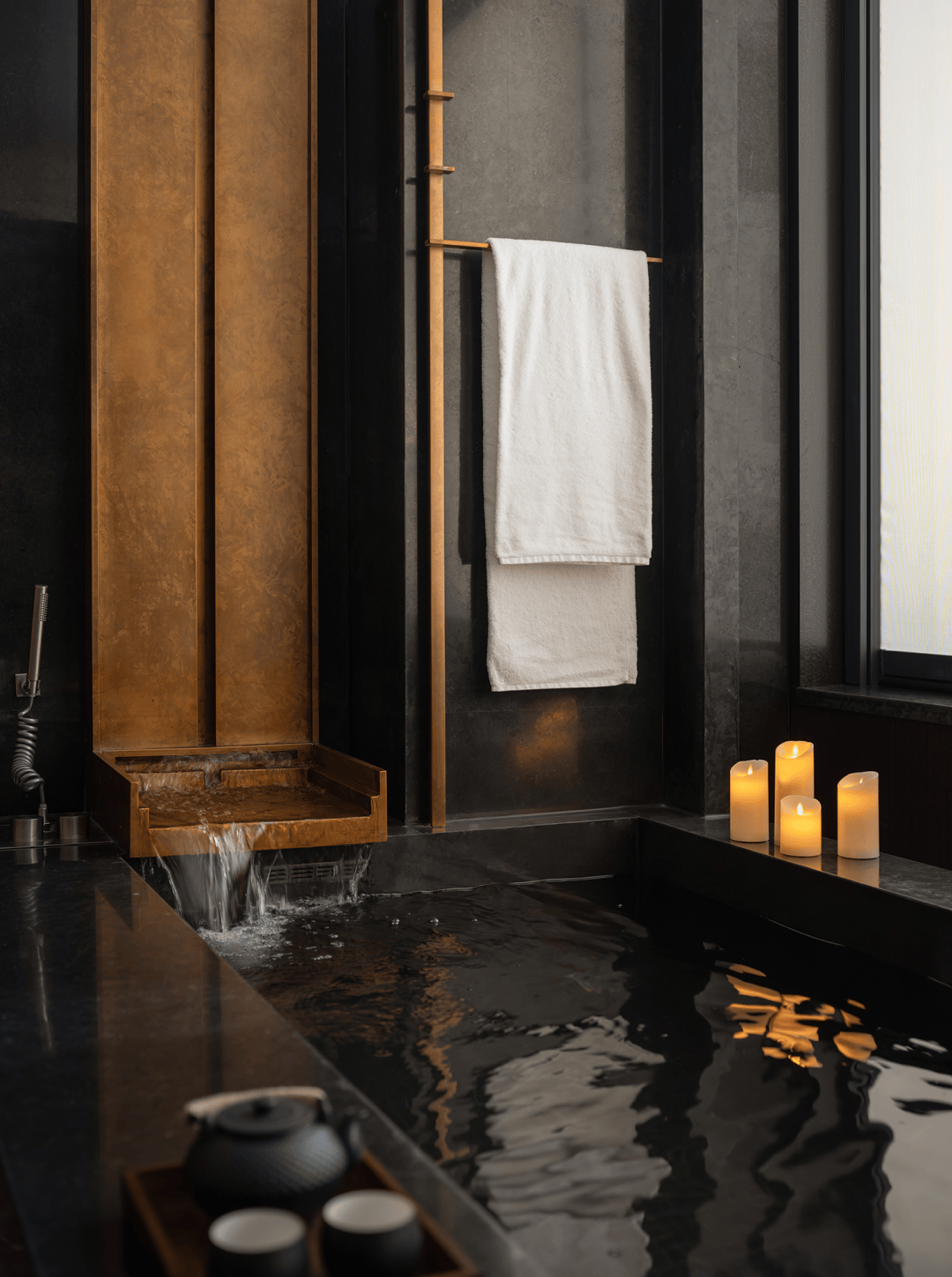 视觉总是有距离感的,而水疗区则将触觉无限放大,这是靠近、亲密和爱慕的感觉。在澎湃的情感体验中,我们总会闭上眼睛——比如做梦、享受音乐以及拥抱亲爱的人。