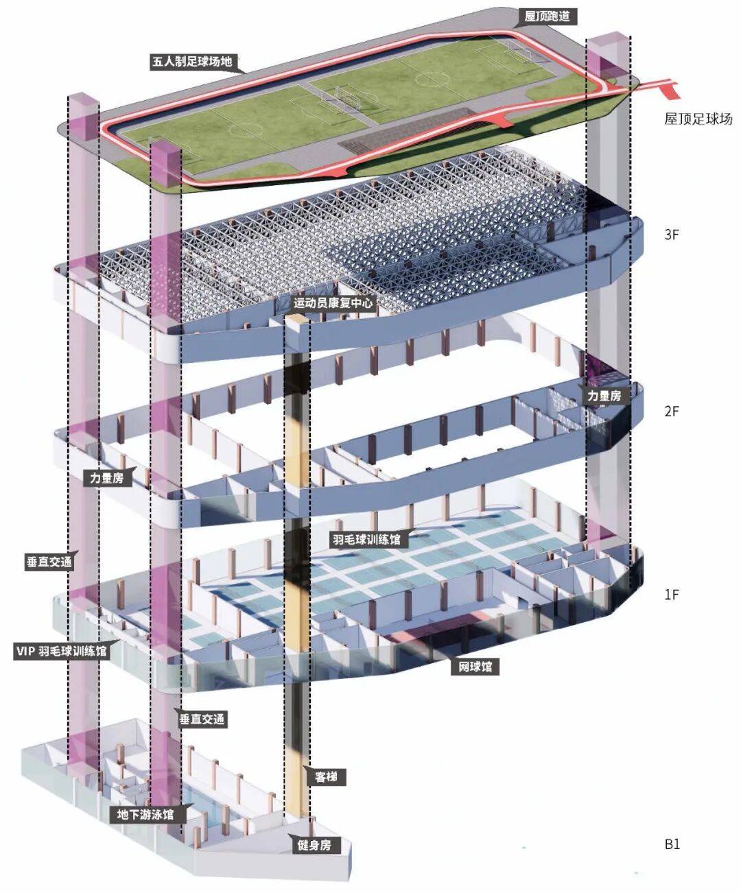 传统体育场馆多为单一大型赛事服务,平日空置率高。转型的关键在于推动“功能叠加”与“空间共享”。通过引入商业零售、文化展览、健身休闲、办公创业、教育研学等功能,打造“体育+”混合用途开发(Mixed-Use Development)。