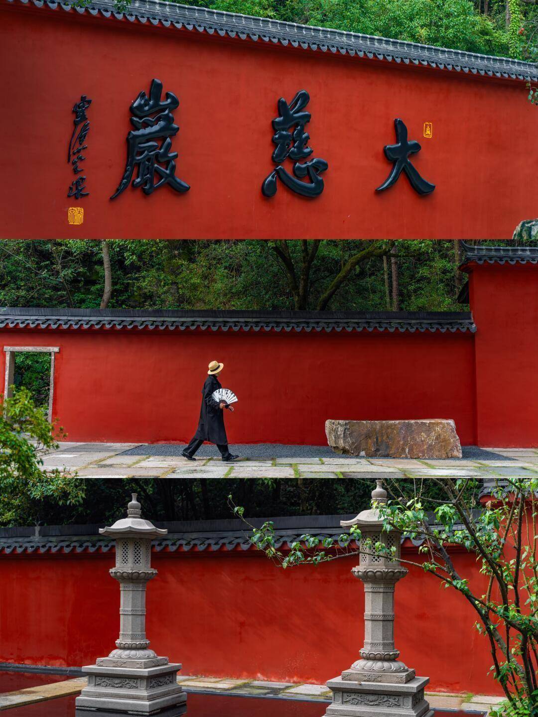 您在大慈岩山脚被朱红墙壁吸引,这正是“江南悬空寺”的标志性景观。正如您所感受的,这抹红在青山绿水间格外醒目,与古朴的汉服女孩相映成趣,营造出“人在画中游”的意境。大慈岩的红墙不仅是建筑的一部分,更是其文化符号,象征着佛教的庄严与江南的温婉。