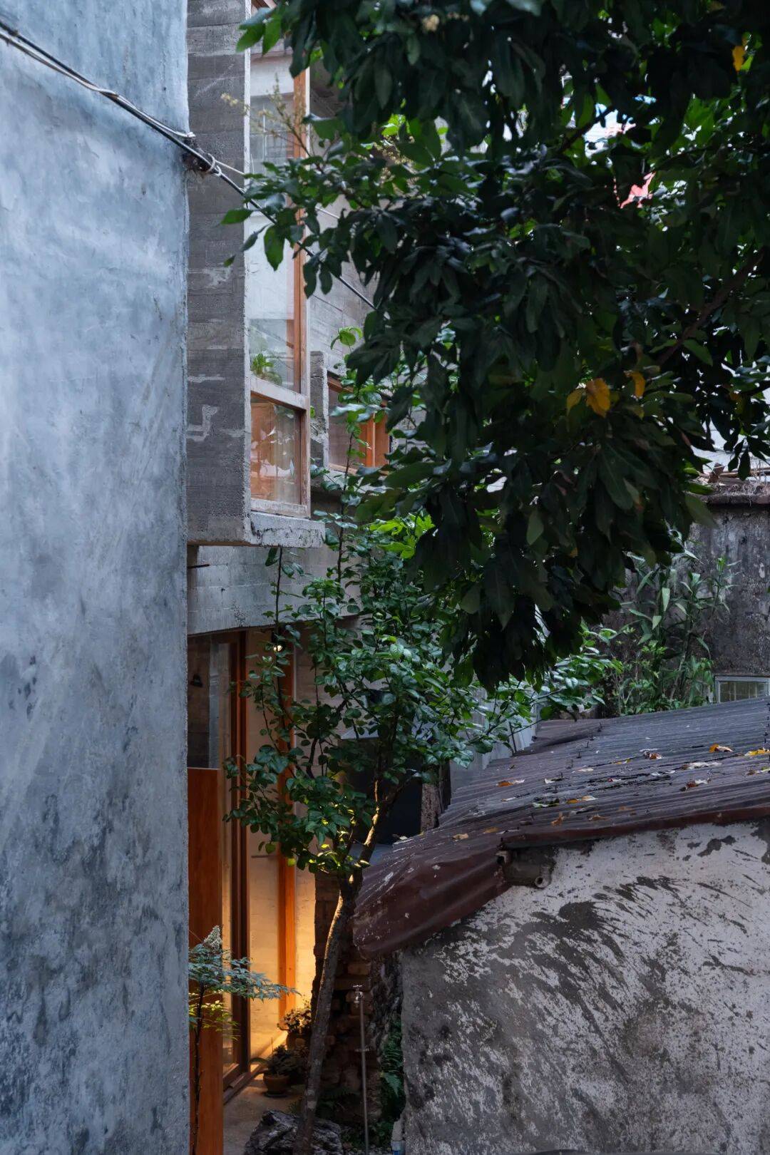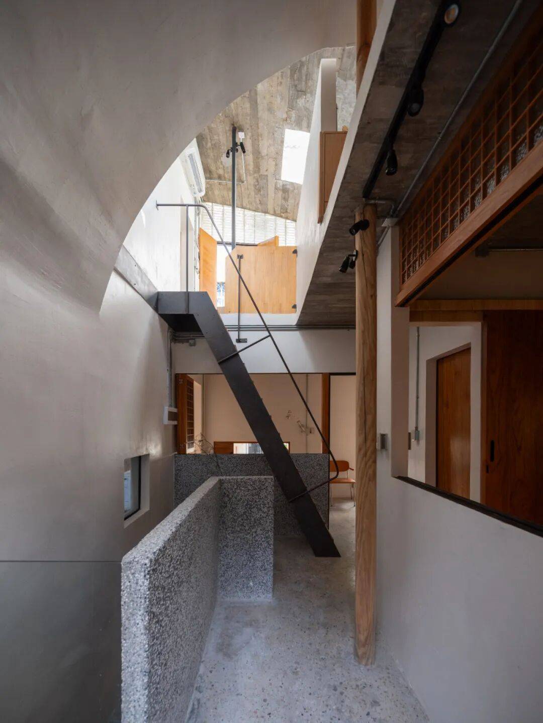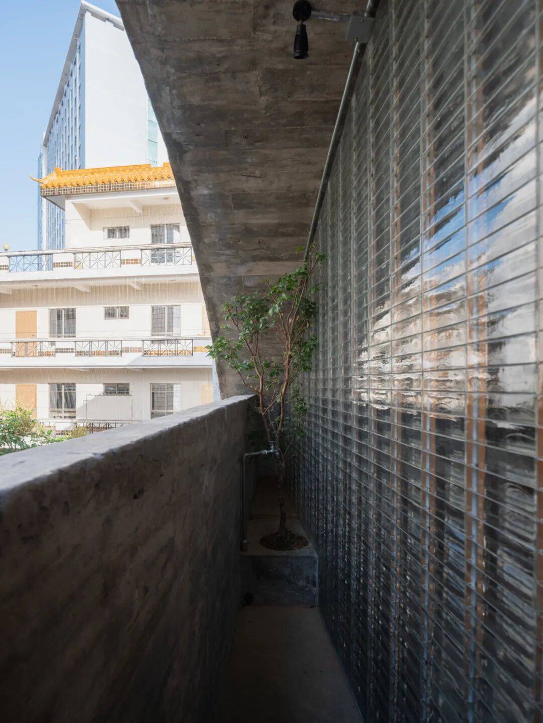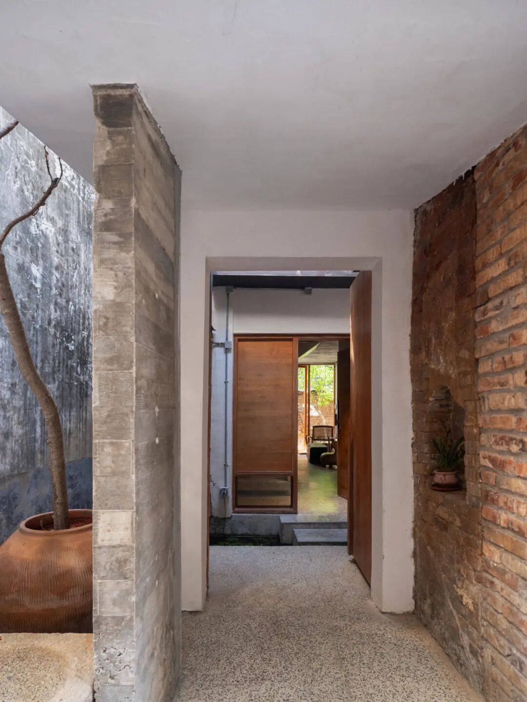 在保留的老墙垣上进行谨慎的剖断与新筑的“掏洞”操作。这些洞口大小、形状、高低各异,其功能多元:一是引入光线,使自然光成为刻画时间的画笔,在室内投下流动的光影;二是引导视线,形成一系列精心框取的景致,将外部的绿意、天空乃至墙隙造影引入室内视野;三是促进通风,与后续的通风系统结合。老墙由此从一个封闭的边界,转变为一个具有渗透性的、连接内外与古今的媒介。