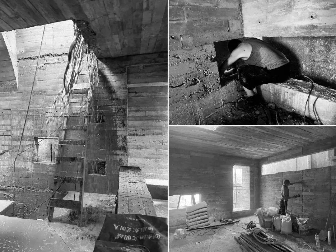 小规模、高定制化的项目在当下追求效率的工业化建造体系中举步维艰。从地基遇到橡胶泥层的技术挑战,到雨季延误、工人更替,整个建造过程(2021-2024)充满了意外。作为建筑师不得不超越传统角色,成为施工管理者、邻里协调员甚至工艺指导者。因极少工人愿意触碰这样又小又复杂的活,全靠江湖道义和人情关怀拉拢。也时有不凑效,班组领头一直不断更替工人。
