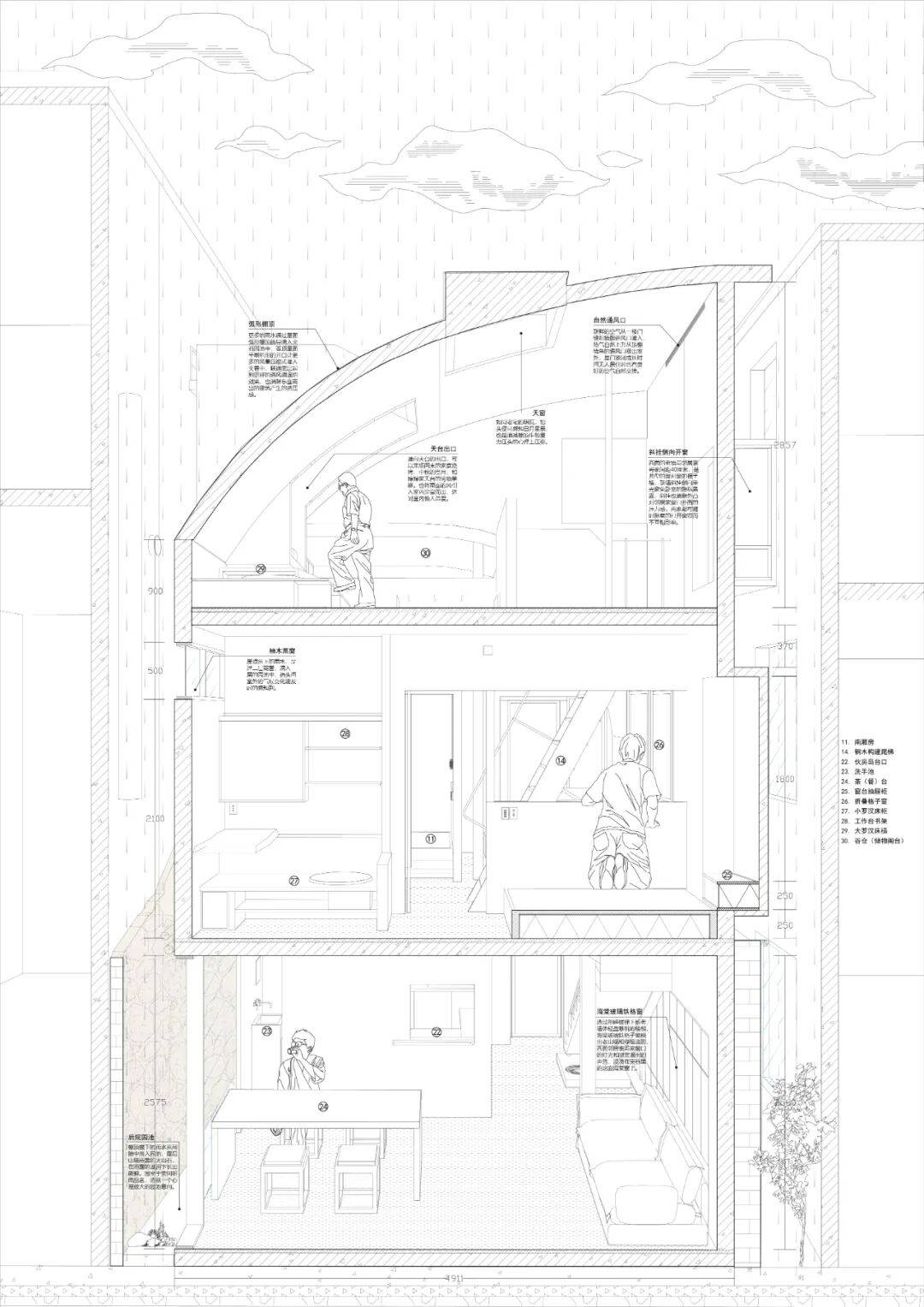暗巧这次机缘,以惠州桥东老城这处44平方米坍塌祖宅重建项目,作为实践对象,在高密度城中村语境下,如何用建筑回应家族记忆、地域气候与复杂的邻里关系。项目面对极限的空间条件,用“时间剖碎”、“微景框借”、“呼吸建构”与“材料诚实性”的方法,对抗常规的封闭速成模式,将建筑锚固于场地历史纹理之中,并将 “爬梯”、“中心柱”、“谷仓”“园池” 等空间原型进行当代转译,设计保留并重构老墙、用弧形屋顶消解压迫感,以及建构微缩园池等方式,在方寸之地筑建一个连接过去与现在,兼具日常性与精神性的“文化原乡”。实践当下城市的微更新与社区提供一种基于人文出发与精细设计的新尝试。