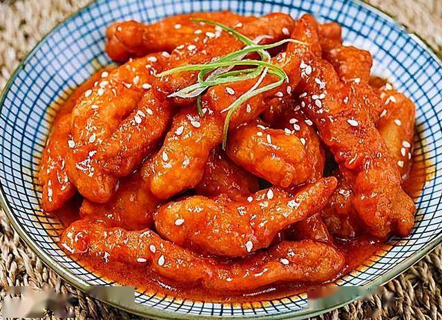 - 酸甜诱惑:肉条裹干淀粉炸两遍,番茄酱+白醋调汁,撒芝麻增香。