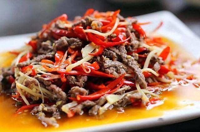 食材:牛肉、盐、料酒、子姜丝、小米辣丝、盐、味精