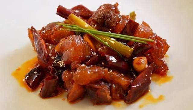 - 胶质满满:高压锅压40分钟至糯弹,干辣椒+花椒炝锅,醋解腻提鲜。