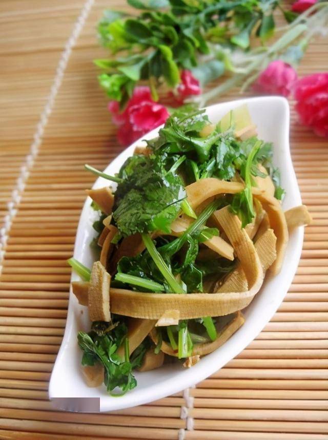 - 趣味造型:豆腐皮包粉丝+时蔬,芹菜扎口,蘸麻油生抽汁。