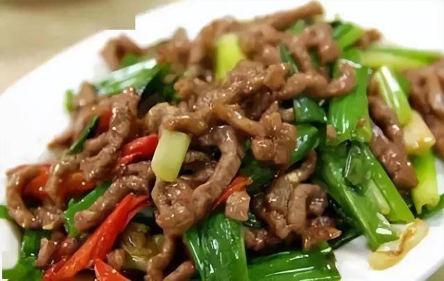 - 嫩滑秘诀:牛肉+蛋清+淀粉腌制,热锅凉油快炒,九成熟加葱段。