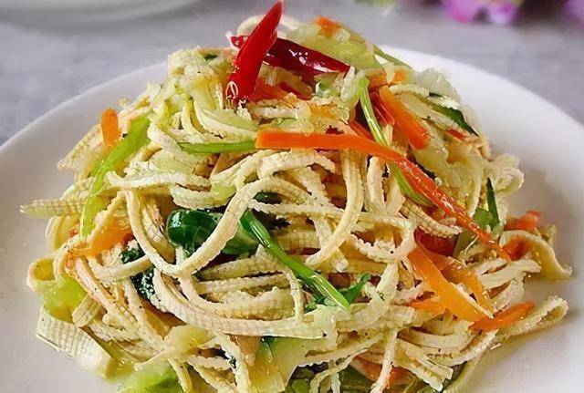 做法:1、豆皮,黄瓜,胡萝卜都切丝。