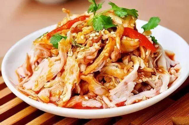 做法:1.鸡治净用绳捆住翅、腿。2.肉厚处用竹针扎眼,煮熟后捞出晾凉。3.取脯肉、腿肉,用木棒轻轻拍松,然后撕成鸡丝装盘,以葱丝白围,浇上调料即成。