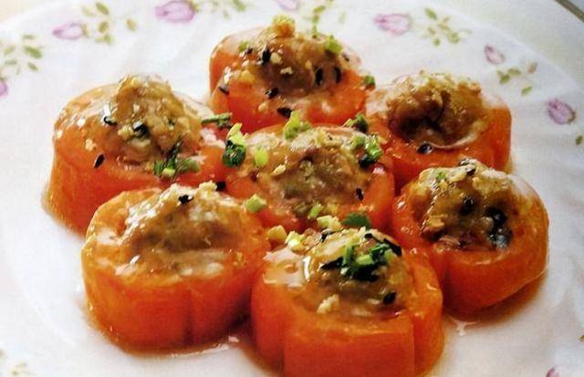 - 趣味造型:胡萝卜挖空填肉馅,雕刻花纹,蒸制后甜味渗透,孩子爱吃。