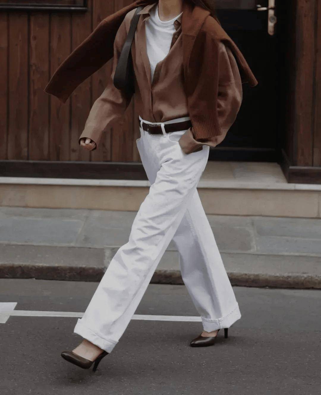 像极简主义者一样设定几种固定搭配模式,比如“上衣塞裤+外套敞开”、“内搭+半裙+短靴”等。这样早晨出门无需纠结,随手拿都能搭出质感。刘雯的经典白T+破洞牛仔裤+小白鞋就是极佳范例。