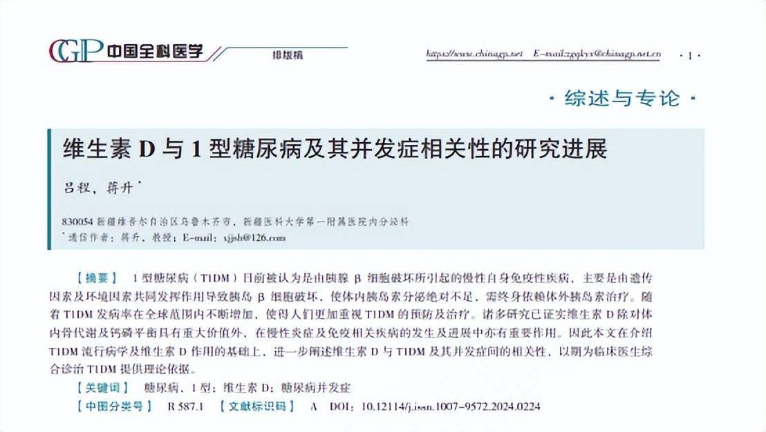 [1]吕程,蒋升.维生素D与1型糖尿病及其并发症相关性的研究进展[J/OL].中国全科医学,1-6[2024-12-23]