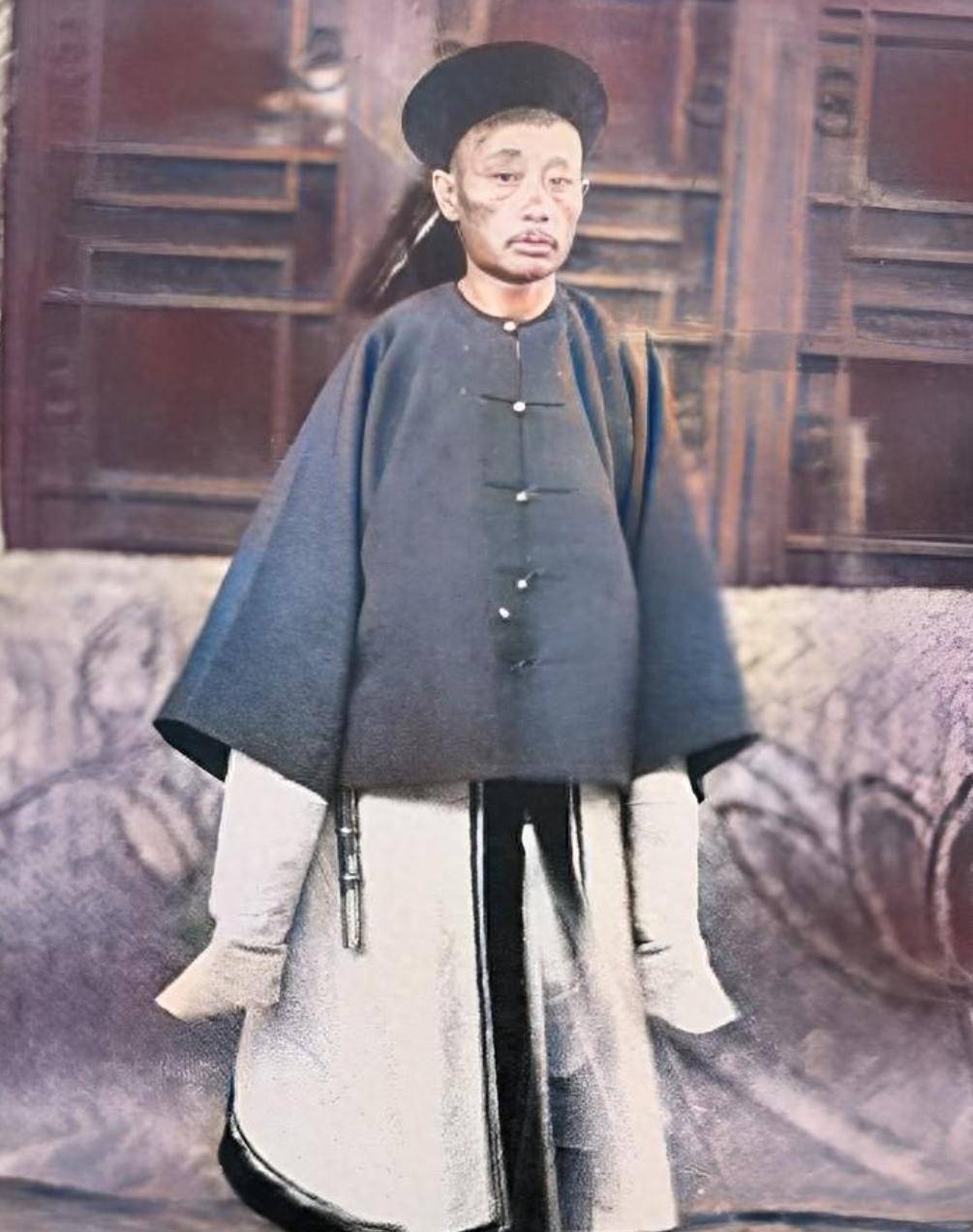 清朝大内高手的照片中,我们看到一位身着宫廷侍卫服饰的男子,他面容严峻,眼窝深陷,发髻高高竖起,这些都是内功修为极深的标志。他那双藏于宽大袖口下的手臂,似乎隐藏着非凡的力量。多年的宫中生活,让他的人生变得深沉内敛,眼睛里透着太多他见证的秘密与隐痛。从他的神情来看,仿佛可以读到一段历史的沉默。他那深邃的眼神,是否也曾对这宫廷中的权力争斗和阴谋有所察觉?作为一名宫廷奴隶,他又如何看待这动荡的历史与自己无能为力的命运?
