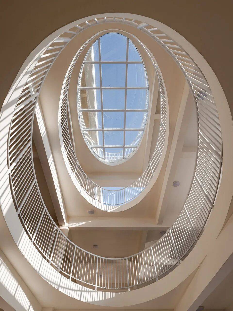 建筑采用浅色外墙和木色装饰,营造温暖氛围,空间流动性和自然惊喜蕴藏在不同的行进和发现中。