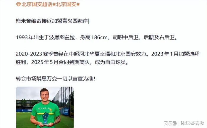 梅米舍维奇若最终披上青岛西海岸战袍,虽不再是工体英雄,但他所带来的那份沉稳、坚韧与责任感,正是当下中超新生力量最需要的精神养分。