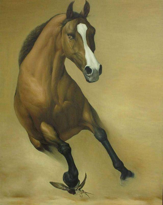 那么,马蹄下的飞禽又是什么呢?首先,从形态来看,它头部微微扬起,尾羽修长且直,并没有燕子特有的剪刀状尾巴。从这种形态特征推测,它更像是一只鹰,或者是一种象征性的“神鸟”。鹰在汉代具有重要的文化地位,它不仅代表速度和力量,更是征服与威严的象征。在河西走廊的墓葬壁画和青铜器中,鹰的形象时常与马一同出现,这种“马与鹰”的搭配,既是现实中狩猎场景的再现,也是权力和胜利的象征。