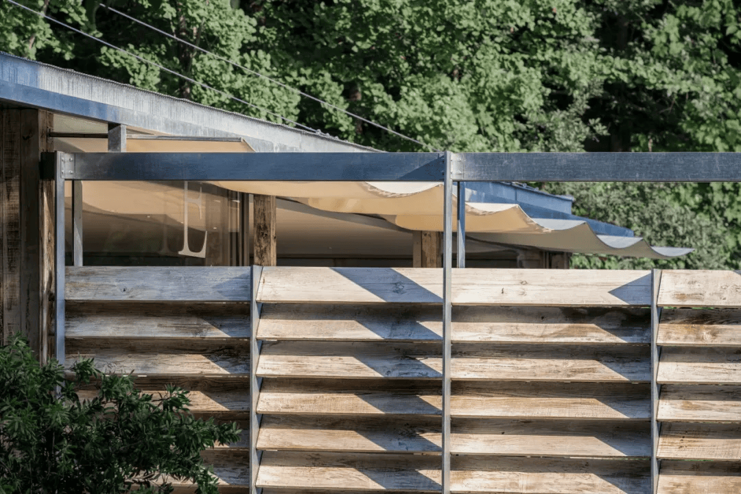 主体结构:使用本地杉木或橡木胶合梁(Glulam),结合少量耐候钢构件,实现大跨度同时保留木材的呼吸性与热惰性。