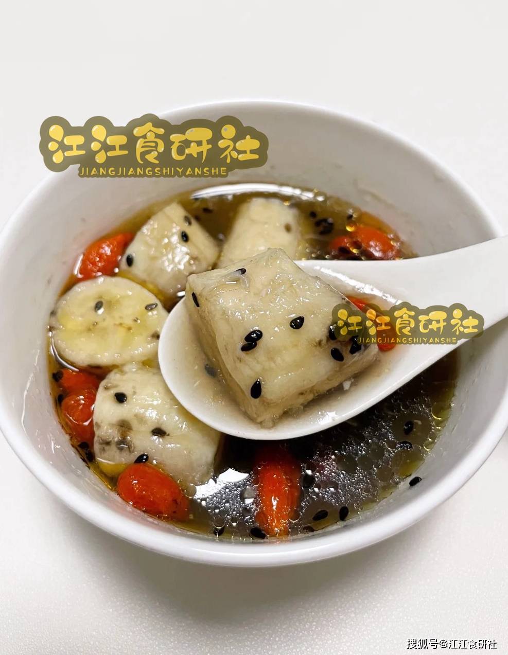 🔍 观察发现:所有图片均带有“江江食研社 JIANGJIANGSHIYANSHE”标识,形成统一品牌视觉体系;食物呈现方式温暖自然,强调“家常感”“可复制性”,非常适合用于公众号、短视频封面或图文教程推广。