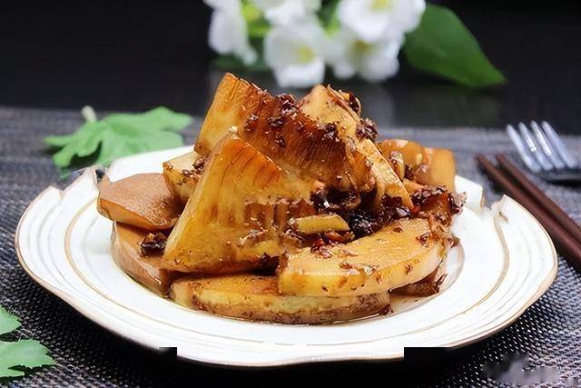 春笋是春季的时令蔬菜,其富含膳食纤维与矿物质。这道菜通过油焖的方式使笋的鲜味更集中,豆瓣酱的加入则赋予其浓郁的酱香。其制作方法类似清代《随园食单》中的“油焖笋”,但调味更偏向现代口味。
