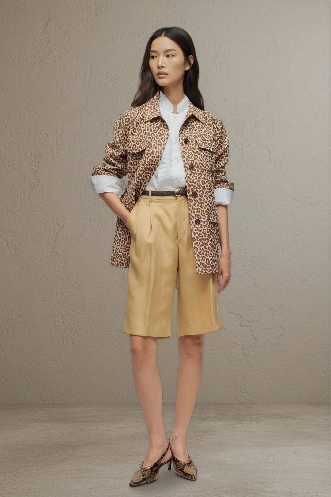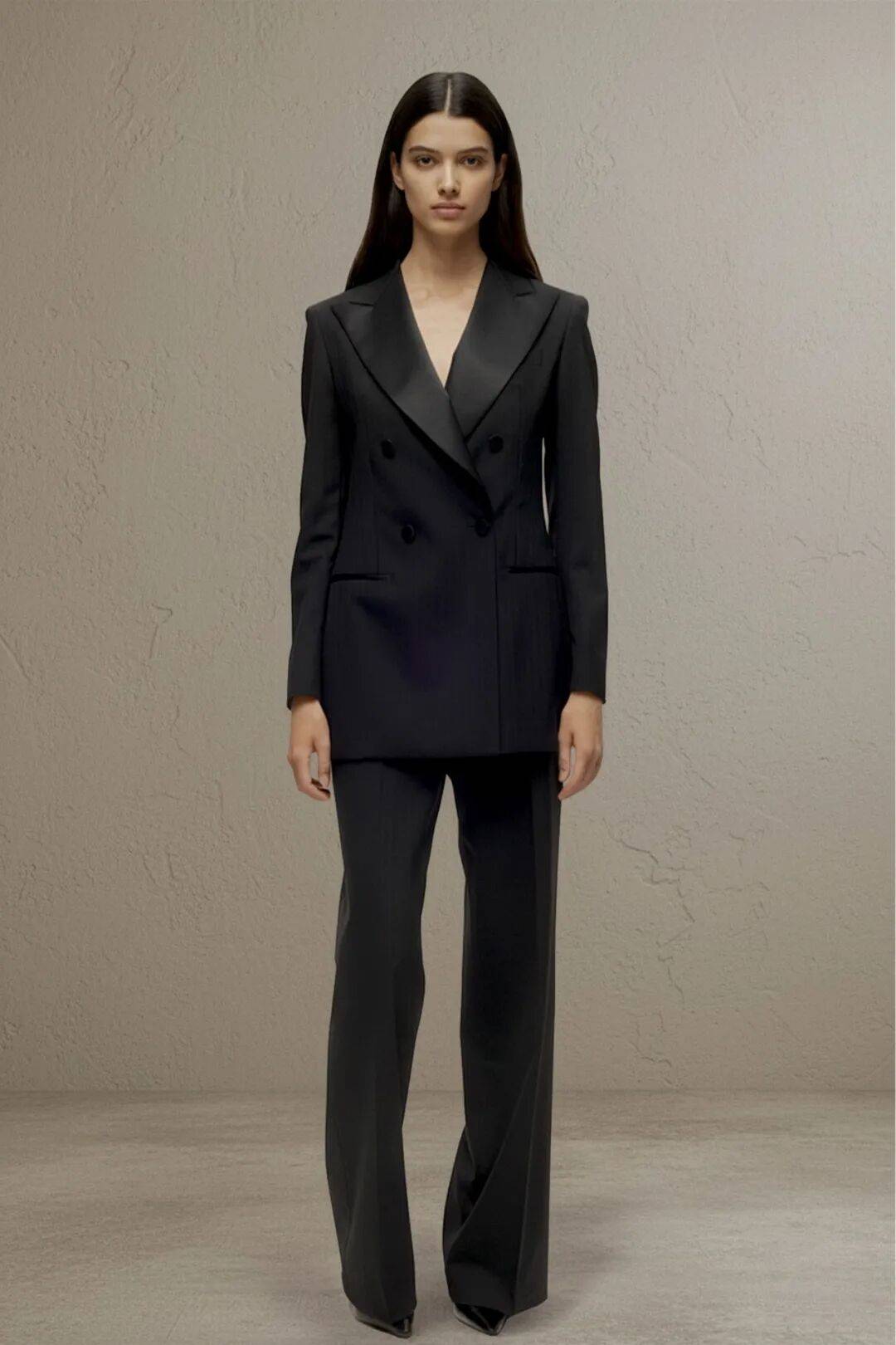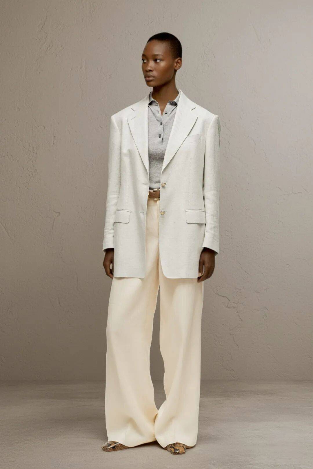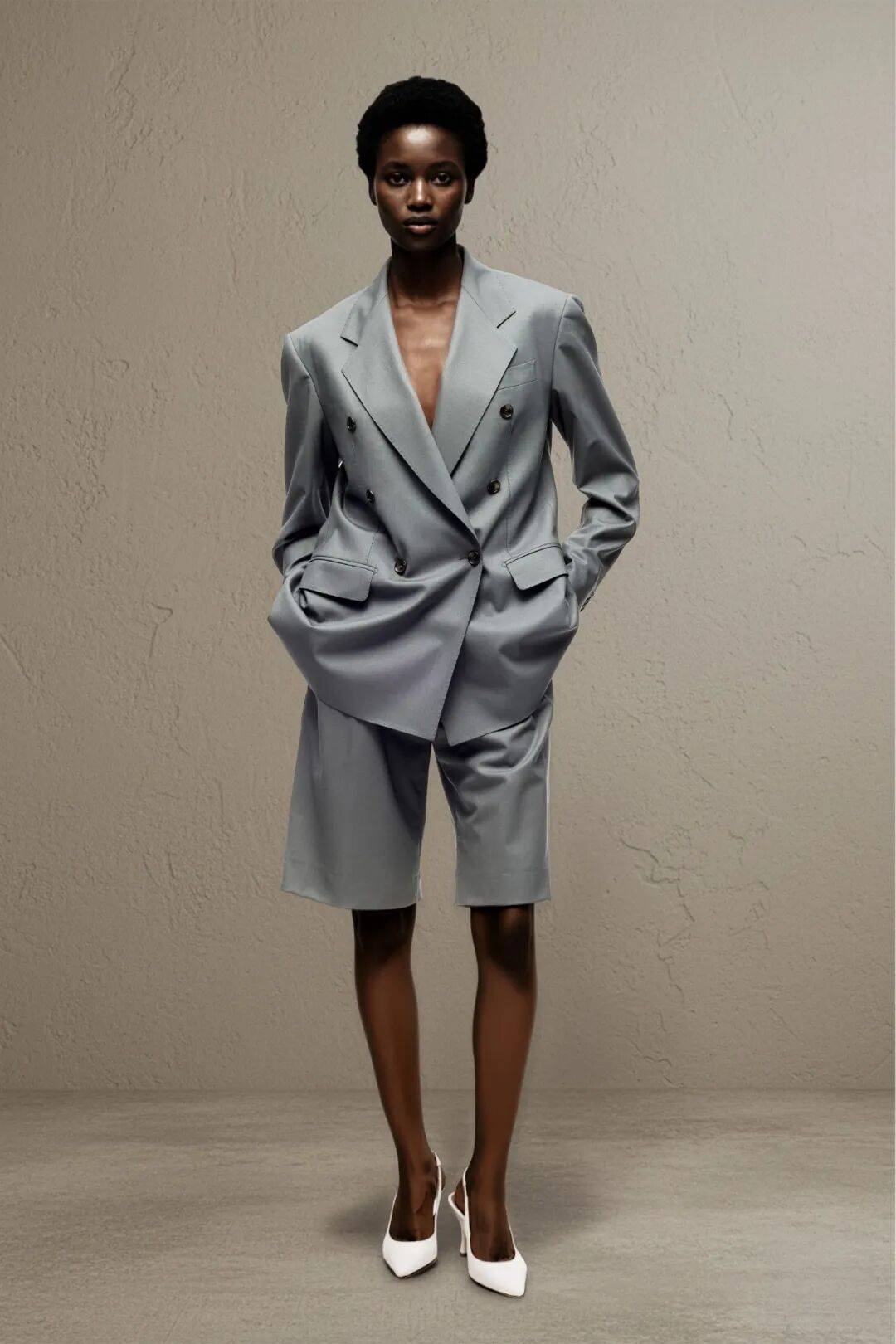 锐利圆弧剪裁,省道与肩窝轮廓相映。