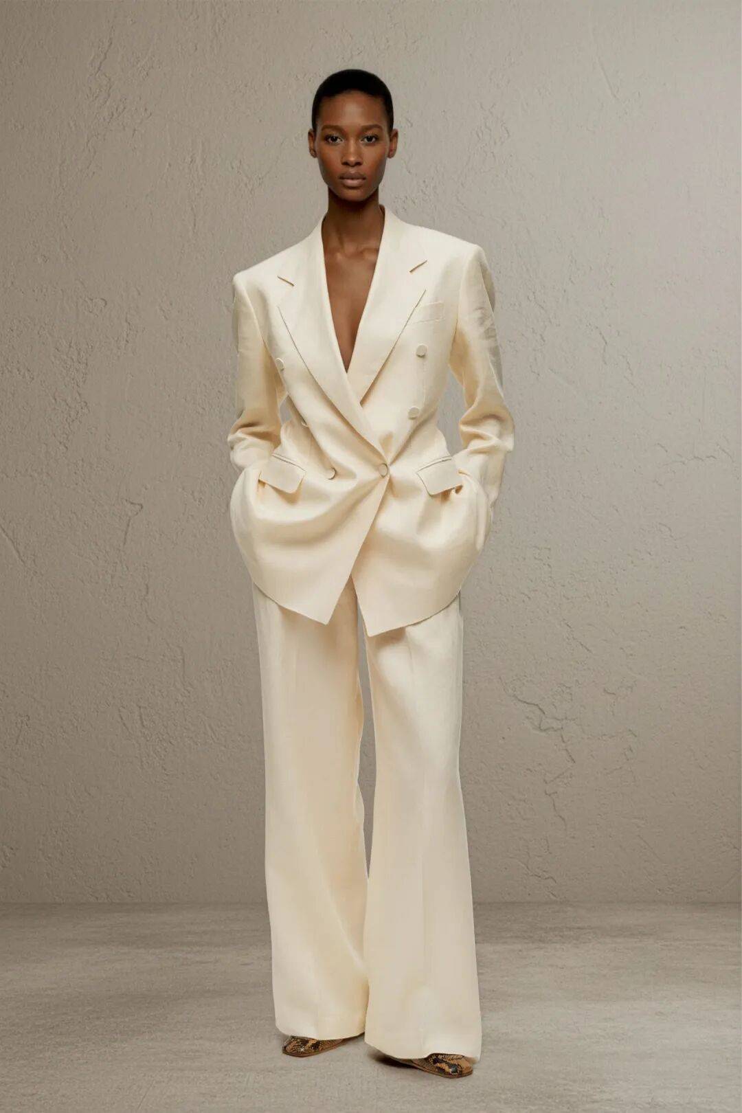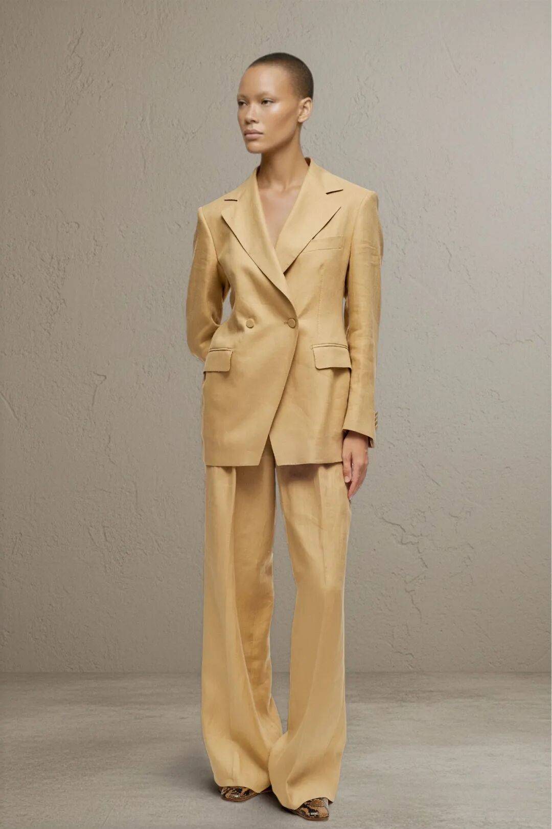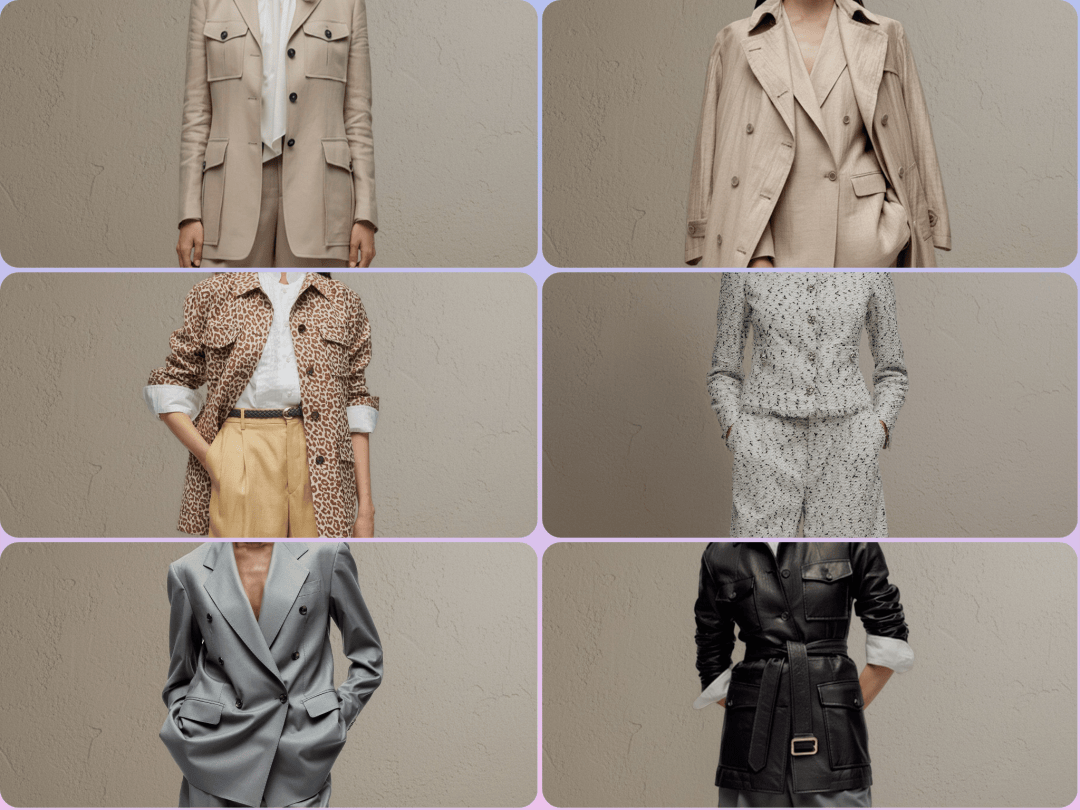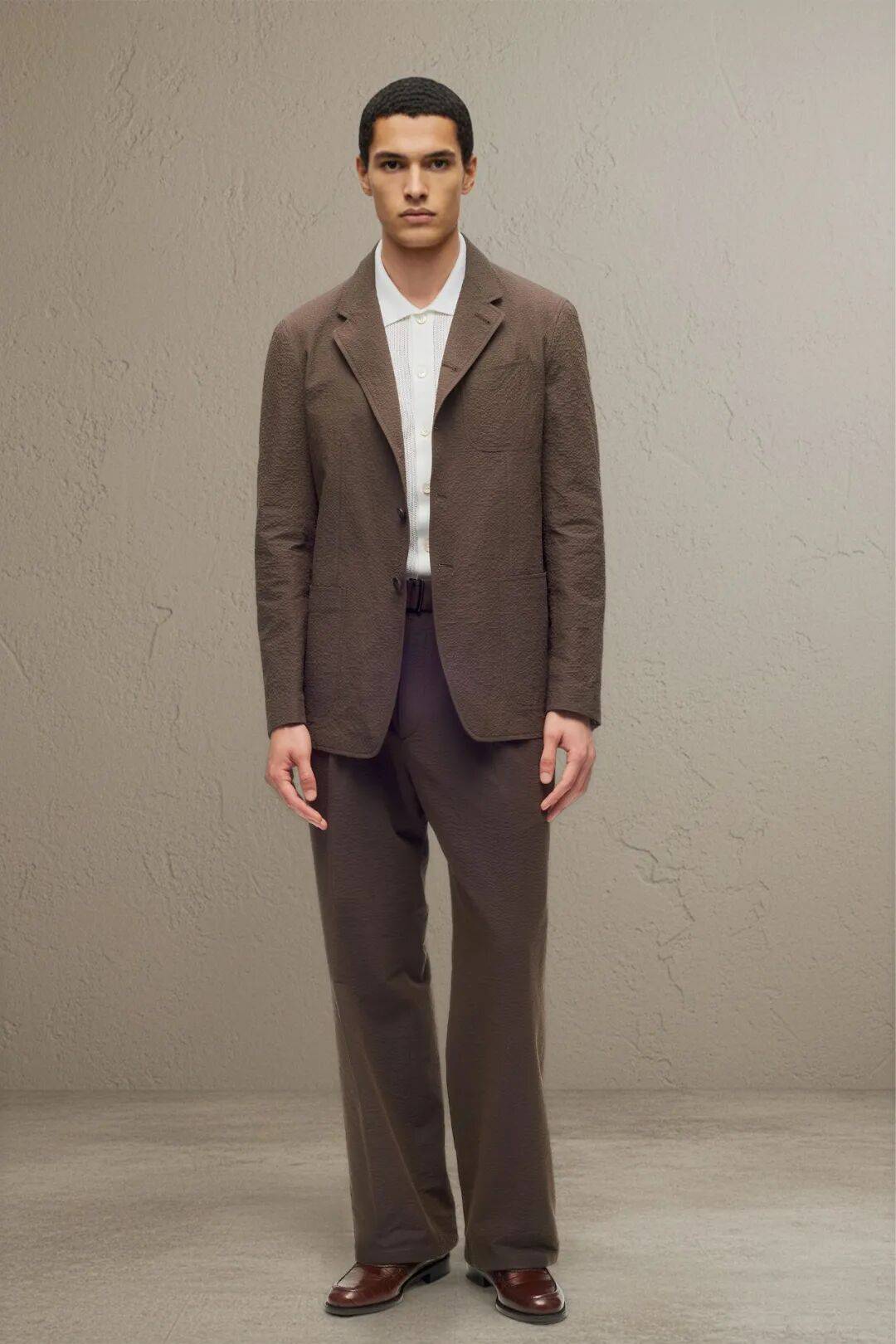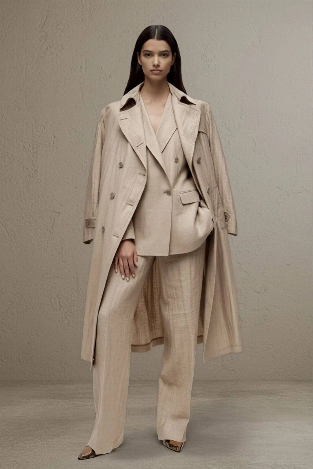 锐利圆弧剪裁,省道与肩窝轮廓相映。