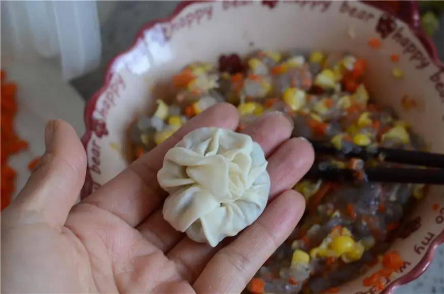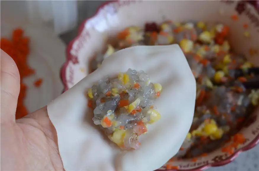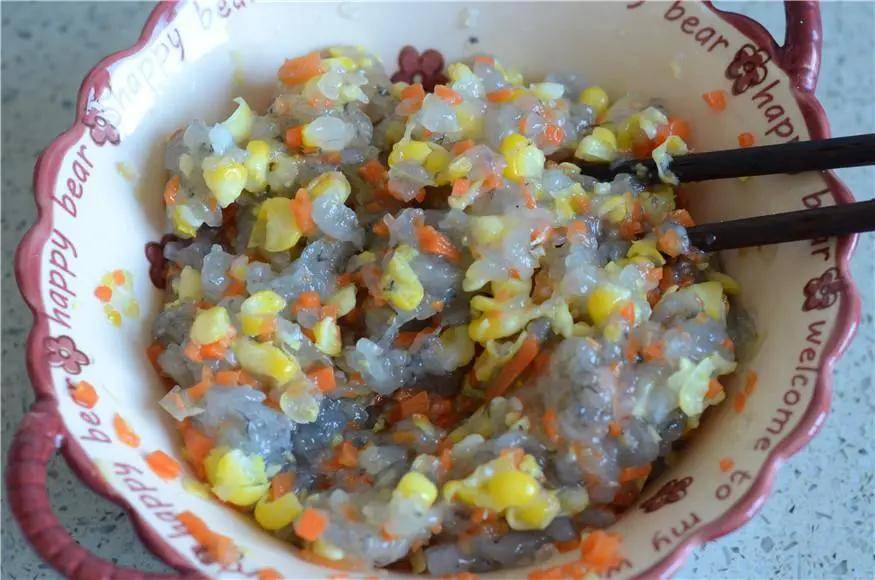 馅料:虾一斤 玉米半个 胡萝卜半个