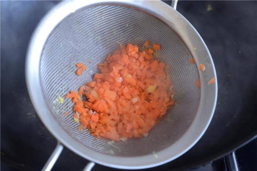 先将玉米和胡萝卜烫熟,稍微过滤备用。