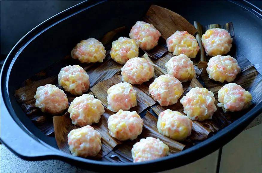 收口朝下,放在蒸锅里,因为皮比较薄,底下要垫油纸或者刷油防粘。