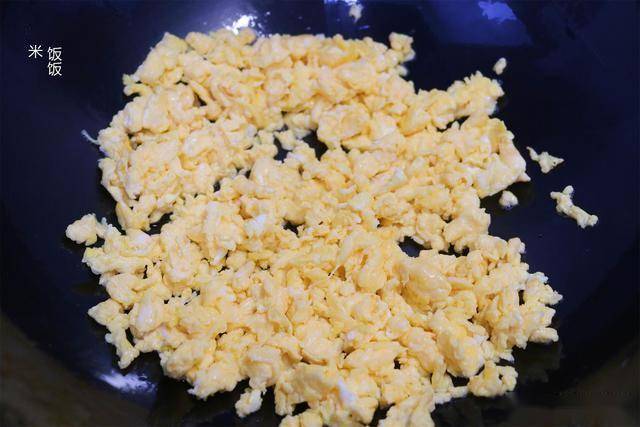 2,热锅热油,倒入搅散的鸡蛋液,大火将鸡蛋炒熟。关火冷凉备用。