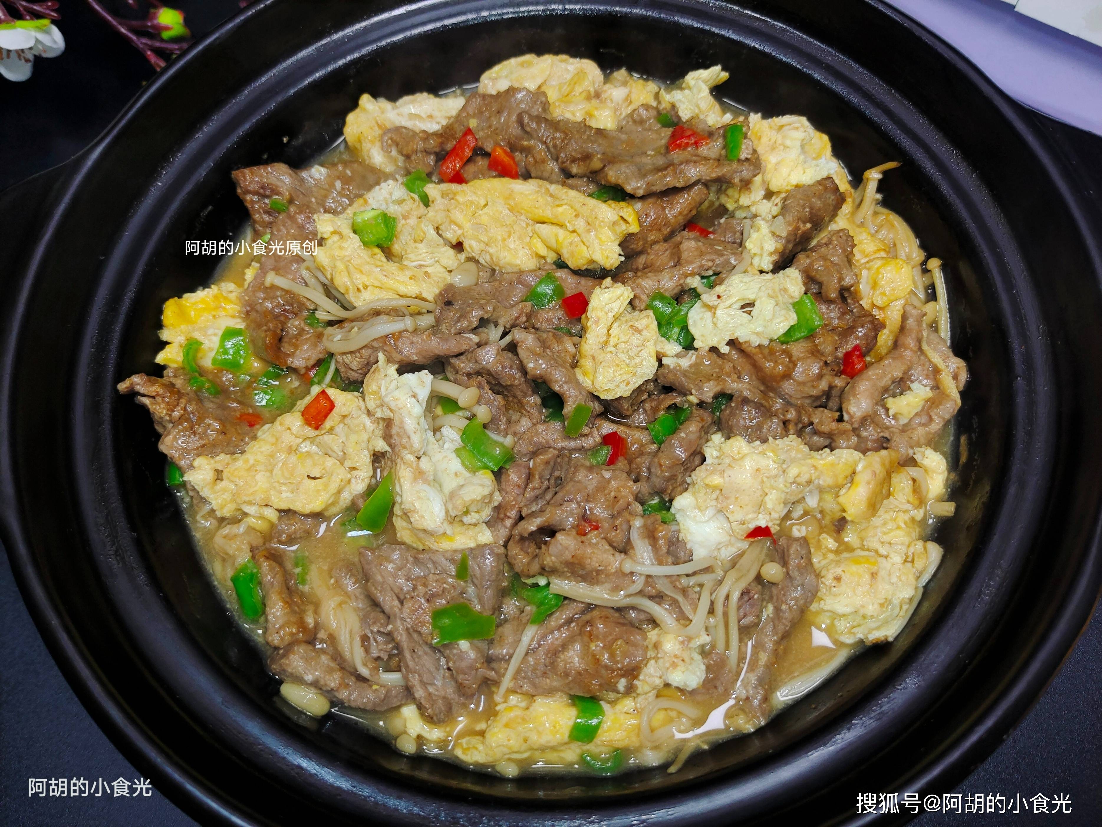 ——鸡蛋牛肉砂锅煲——