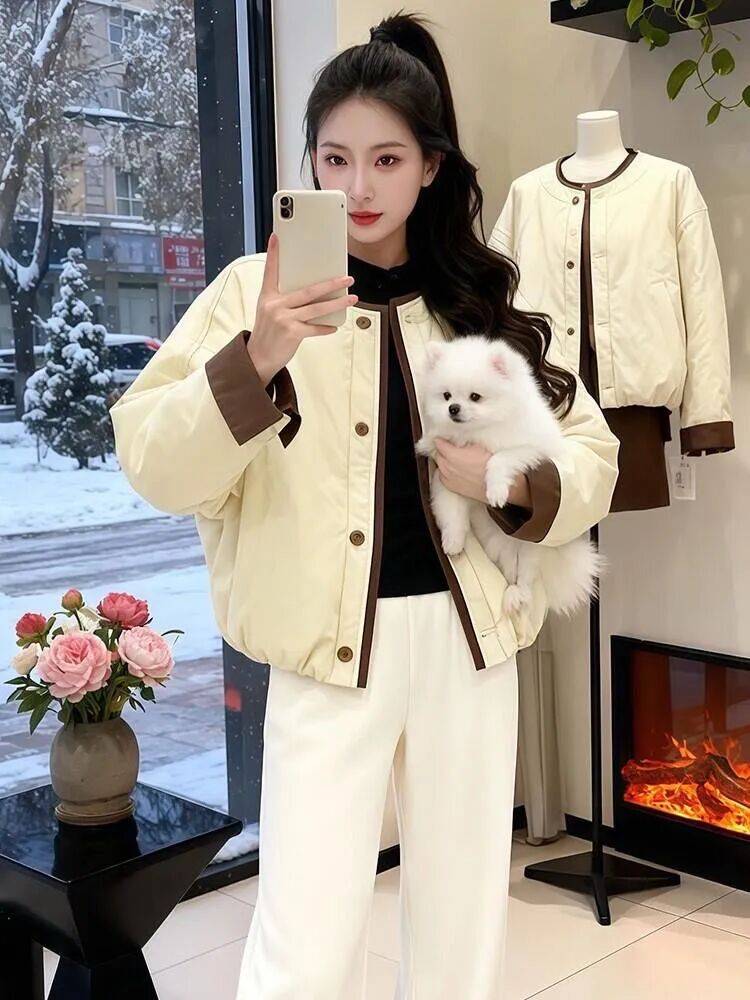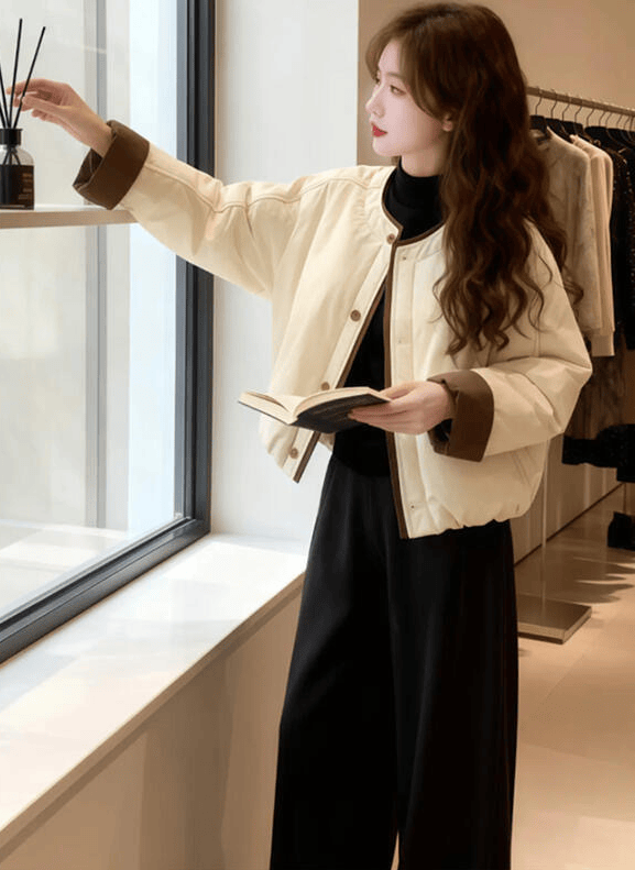 如果你想要一件什么风格都能搭的外套,这款白色棉服就是很棒的选择!