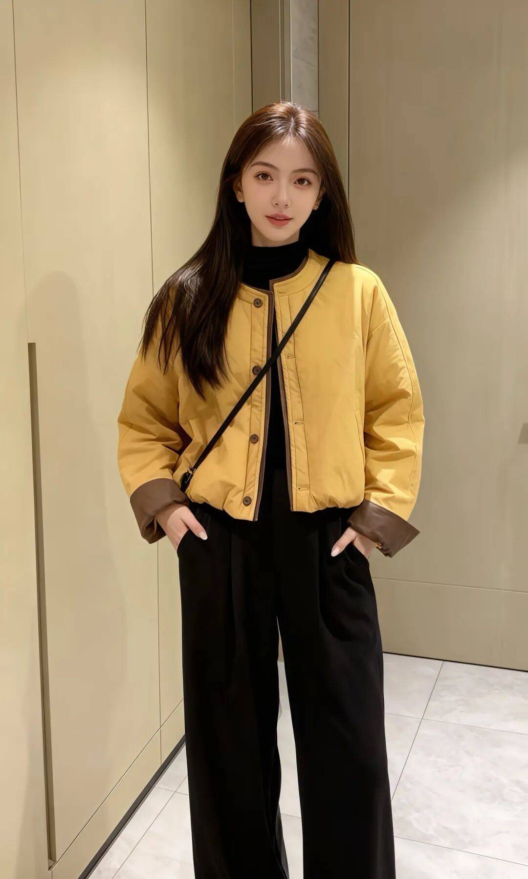 这款黄,更偏向于姜黄色。不是那种刺眼的亮黄,而是像秋日的落叶色,带些暖意。