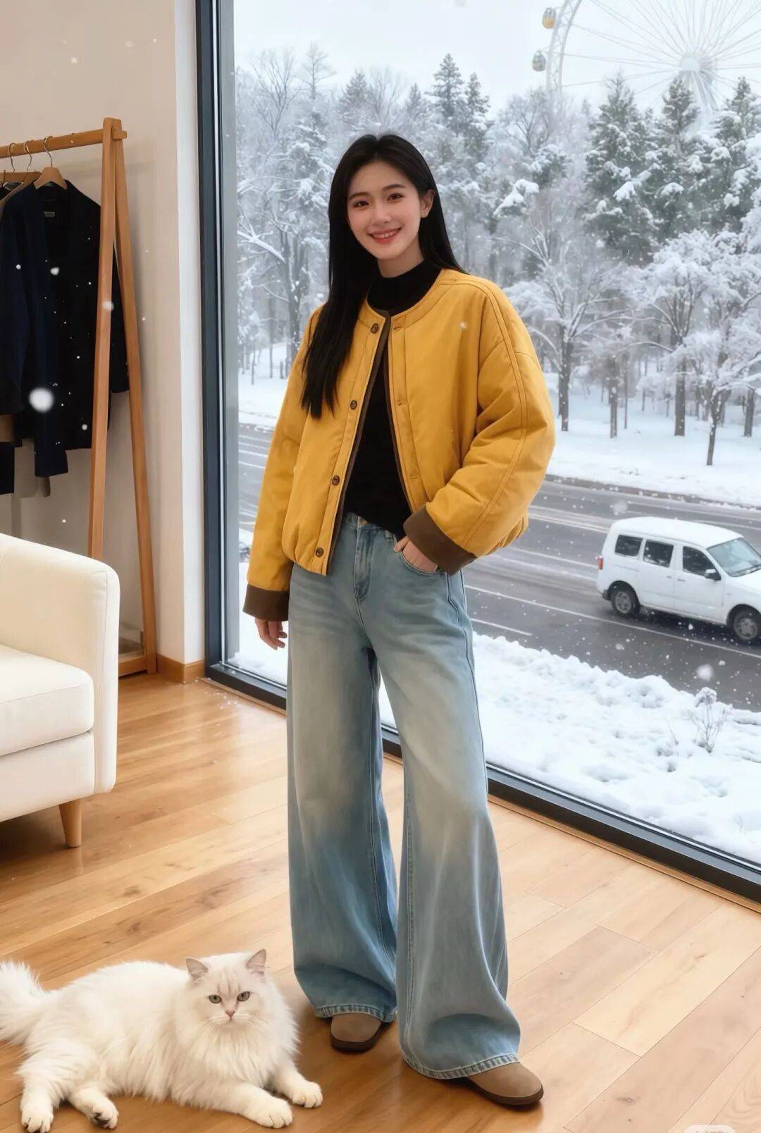 牛仔裤的版型众多,但最推荐的还是修身的微喇牛仔裤,首先,微喇设计自带复古韵味,搭配柔软毛衣或利落大衣,保暖之余更添减龄活力,轻松穿出“不费力的优雅”,最重要的是修身的版型加微喇叭的设计,可以让腿部线条更完美,整体穿搭在视觉上也更加显瘦显身材。二、阔腿裤,遮肉显瘦又有高级感