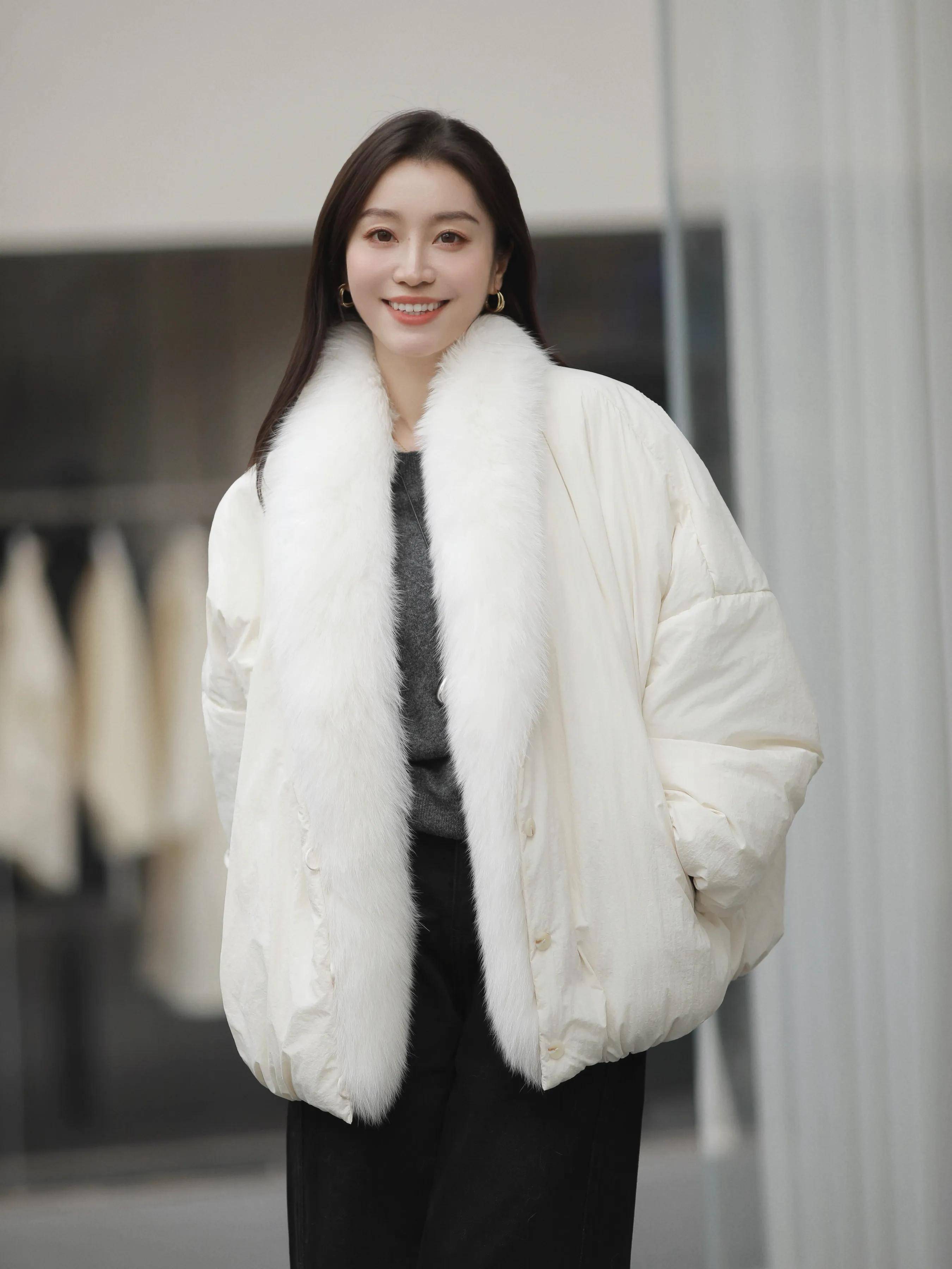 再配上一头慵懒的大波浪卷发,瞬间将女人味拉满。这般穿搭既保留了冬日的纯净,又透着不经意的妩媚,美得让人挪不开眼。