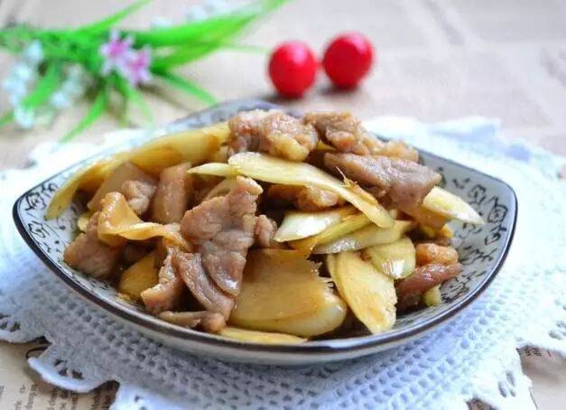 猪里脊,茭白,油,盐,姜,料酒,生抽,老抽,淀粉,糖。