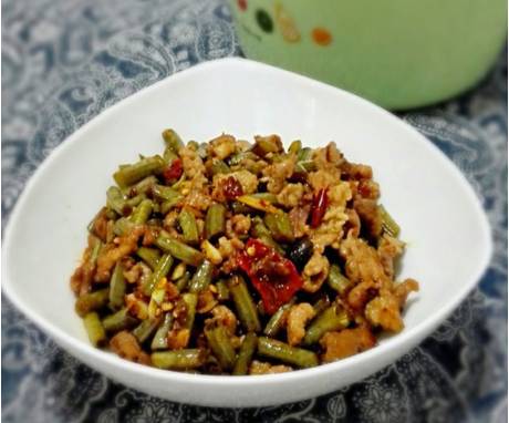 肉末,酸豆角,姜,干辣椒,料酒,生抽,老抽,香油,油,胡椒粉,糖。