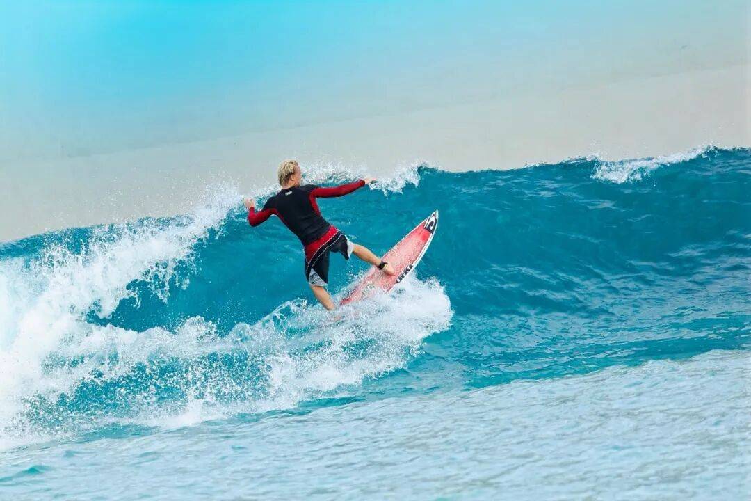 对于冲浪爱好者来说,自然海浪存在不可控性,在海中可能苦等许久却只遇到小浪,或者浪来时状态不佳而错失。中旅逐浪樾潮酒店应运而生,拥有全国首个奥林匹克级人工造浪池,面积达10000平方米。这个造浪池能模拟23种浪型,浪高可在0.3 - 2.7米之间随意调节,完全还原真实海浪的起伏感,无论是冲浪小白还是专业选手都能在此尽情玩耍。