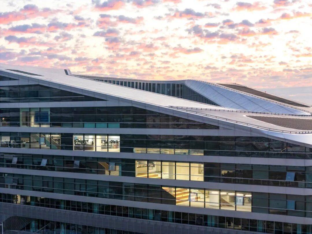 小鹏新总部建筑内的多重复合功能组成了一个真正意义上完整的产业生态链;建筑开放的造型也与城市空间融为一体;建筑体大开大合、浑然一体,向着远山腾跃而起,昂扬的姿态也仿佛呼应着中国的工业制造商向着全球化AI科技巨头的跨越式发展。这座简洁而优美的建筑群背后,是weico团队对中国汽车产业功能重构与空间需求革新的深刻理解,也是建筑师面对新时代大型科技综合体设计挑战给出的答案。