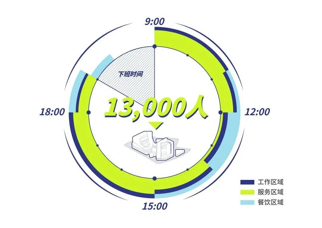 △ 1.3万人办公生活,不同时段下的典型区域人流量分布