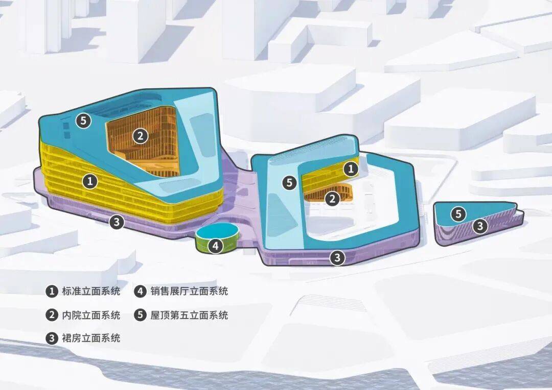 但整个建筑群最引人瞩目的,就是它一气呵成、转折起伏的第五立面。当人们从广州市中心经由高架桥进入天河区的时候,首先引入眼帘的就是这个第五立面。