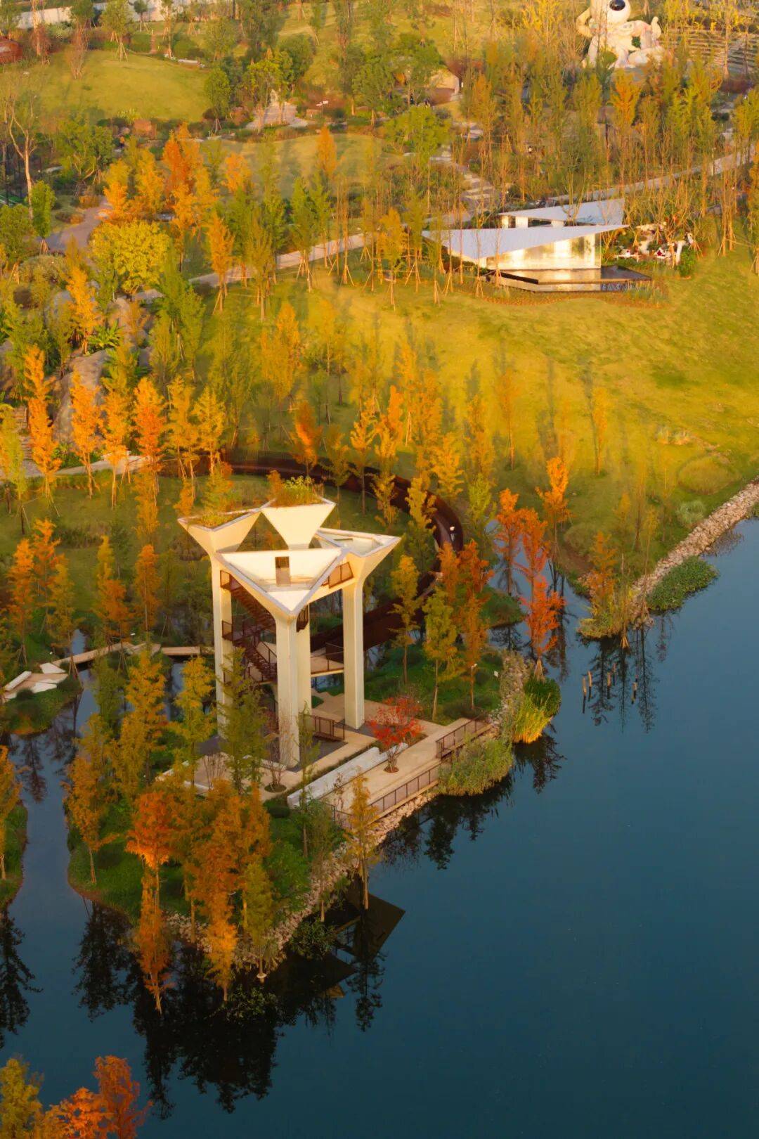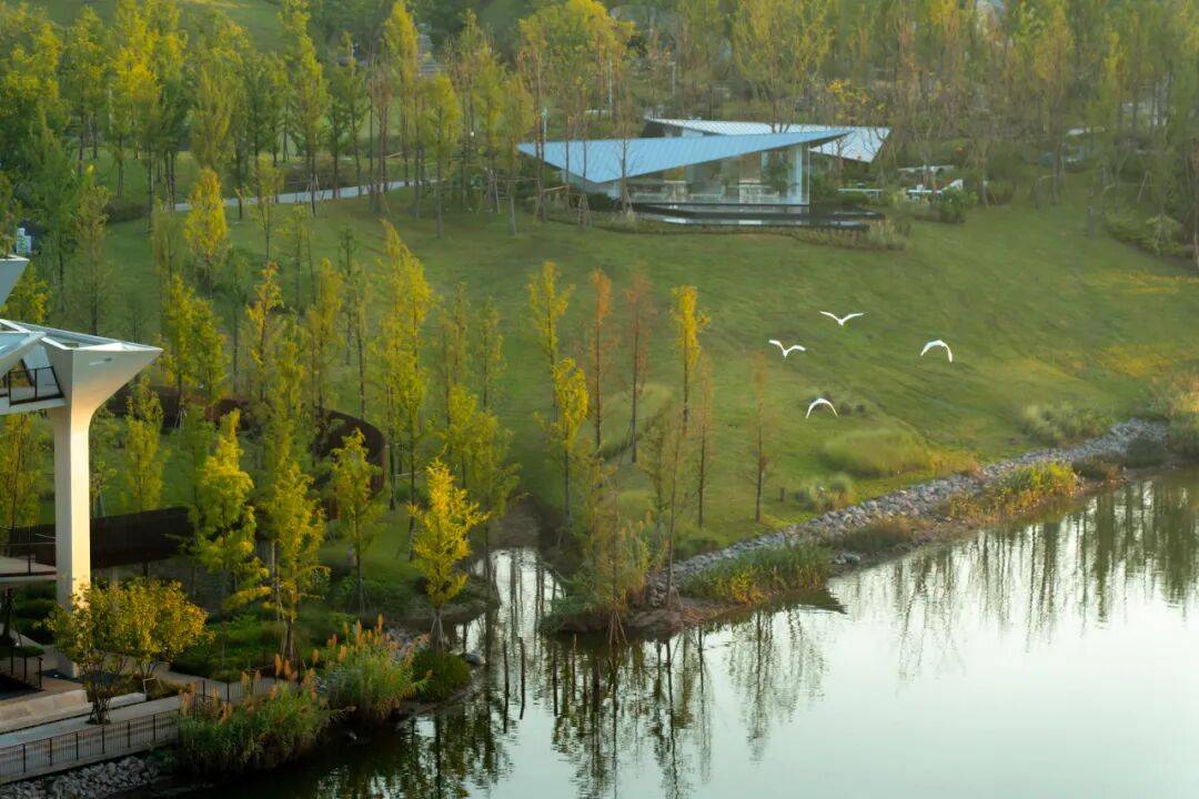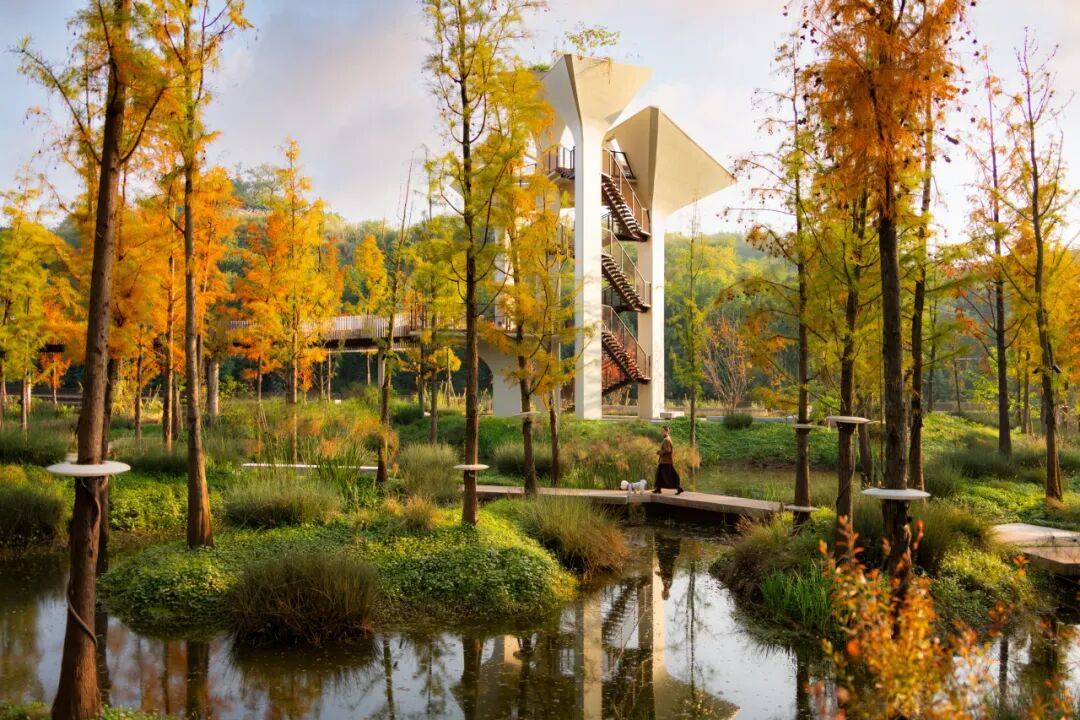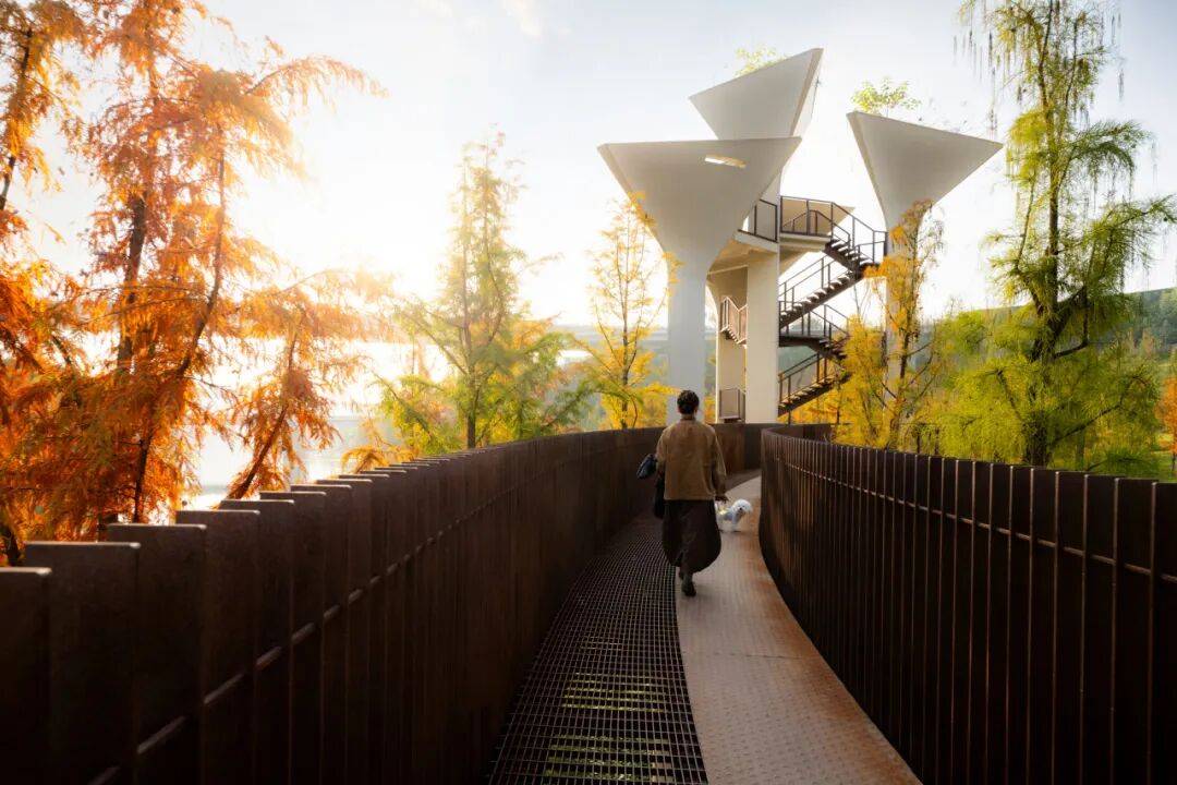几何语言:观鸟塔、纸飞机观景台等建筑以简洁几何形态融入自然,避免突兀感。